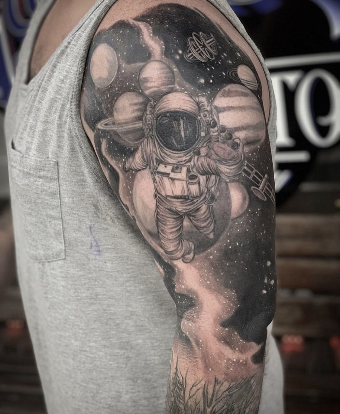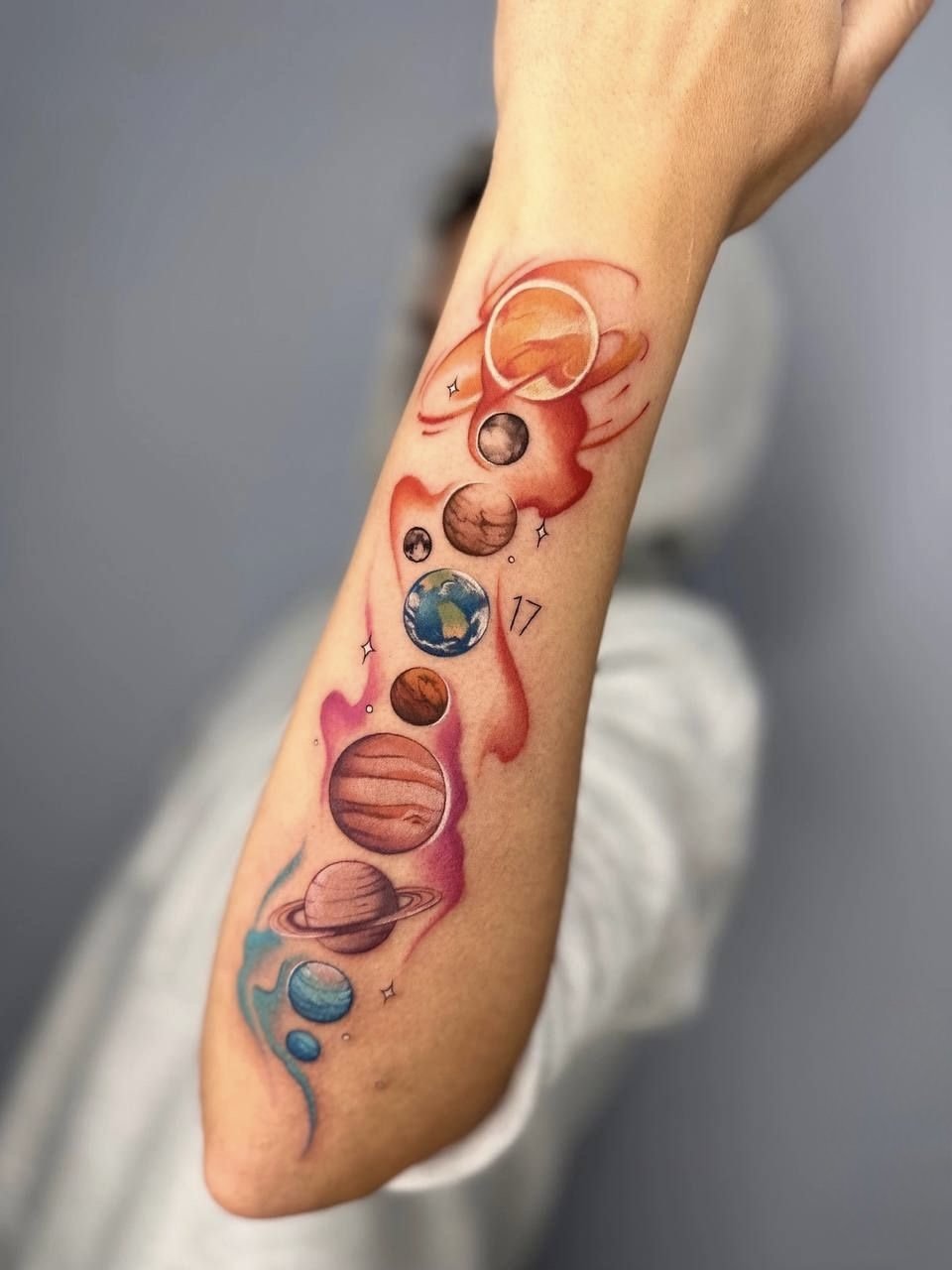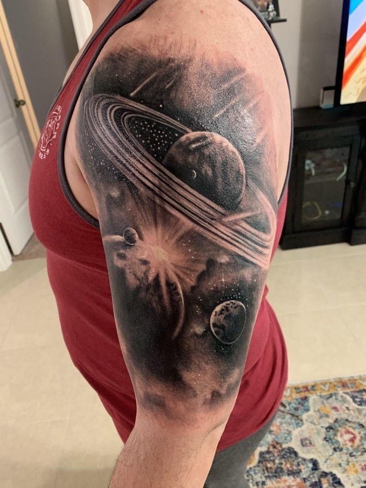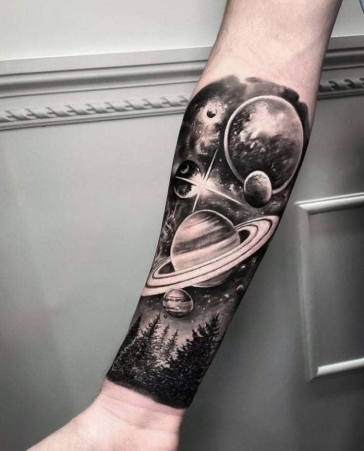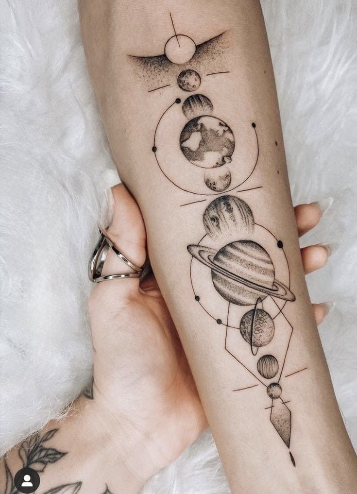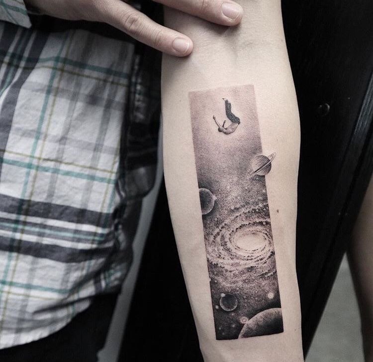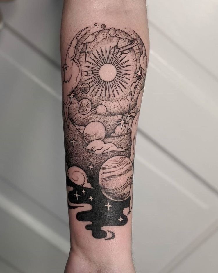 Споконвіку людей приваблювала безкінечність і таємничість зоряних просторів. Вони символізують свободу, необмежені можливості й бажання вийти за рамки звичного. В астрології планети й сузір’я наділені особливими значеннями, що впливають на долю людини. У татуюваннях цей мотив може відображати віру в приреченість подій, любов до пізнання, прагнення до вищого або зв'язок із духовним. Тату з елементами космосу підкреслює внутрішній світ людини, її мрії та постійний розвиток.