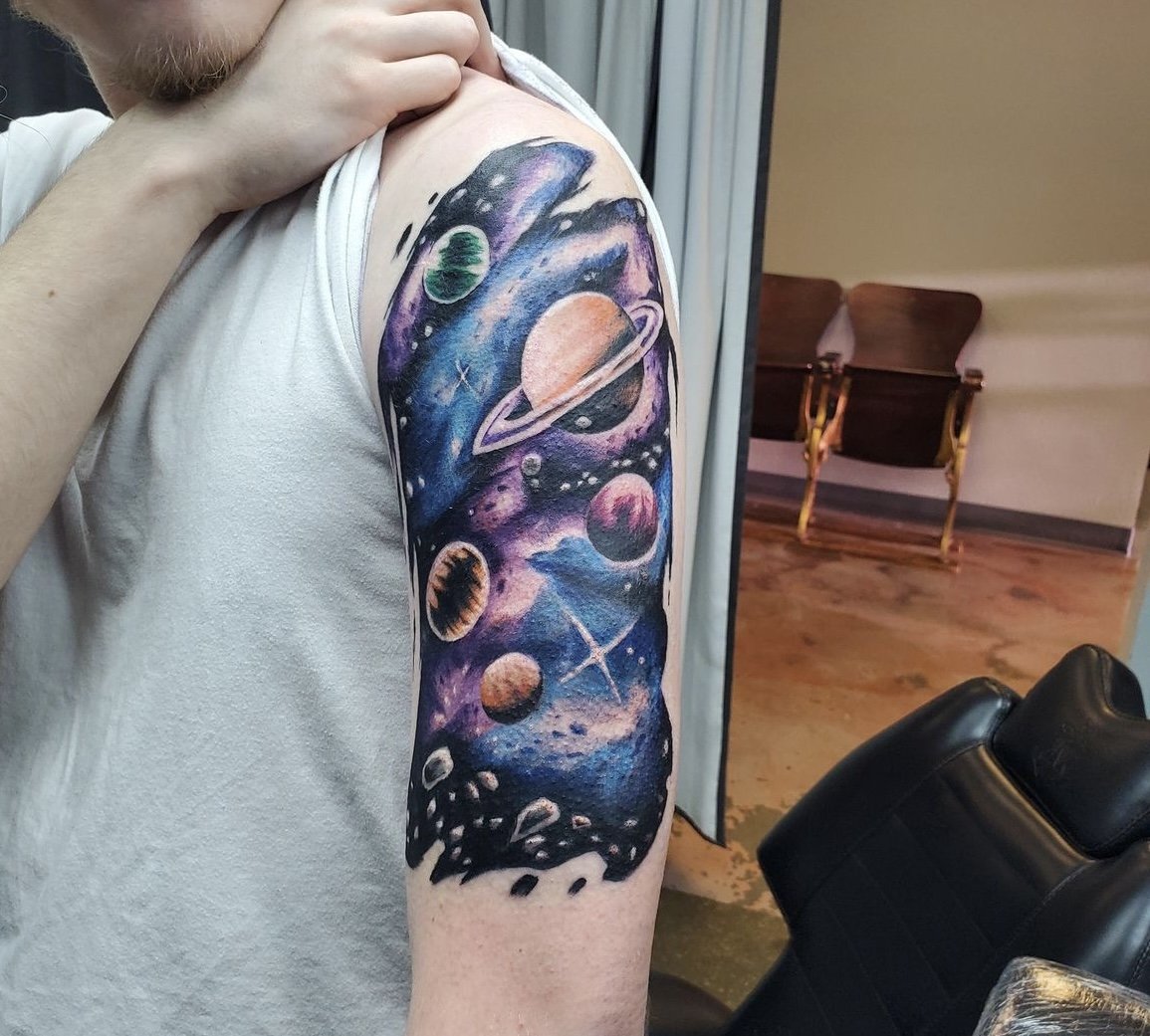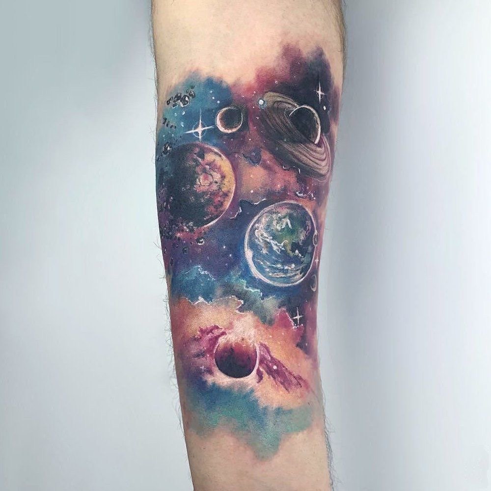Татуювання на тему космосу можна виконати в різних стилях.