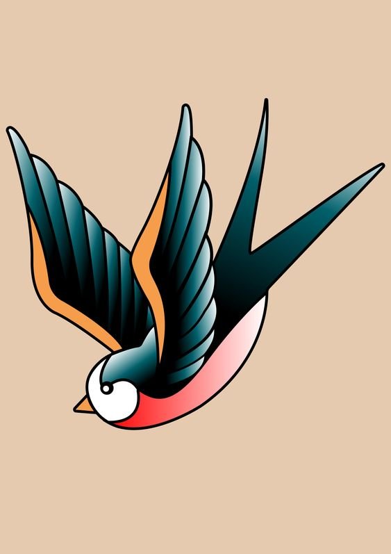 Ластівка була провідницею Ізіди, небесної богині вірності та заступництва над породіллями. Ізіда управляла вітрами, і вважалася так само покровителькою моряків. А оскільки ластівка всюди супроводжувала Ізіду, моряки почали наносити собі на тіло зображення цього птаха, вірячи в те, що ластівка буде їх оберігати та поверне їх додому. Але зробити татуювання ластівки дозволялося не всім морякам, а лише тим, хто проходив п'ять тисяч миль по морю. Пізніше, з кожними п'ятьма милями моря, або проходження інших морів, екватора, на тіло додавали ще одне зображення птаха. Ластівка для них була як оберіг, якщо з матросом що-небудь траплялося, то ластівка рятувала його душу. В наш час вже немає таких традицій, й зображення ластівки може набити собі моряк, що ще не виходив в море. Але крім морської тематики, ластівка має ще кілька трактувань.