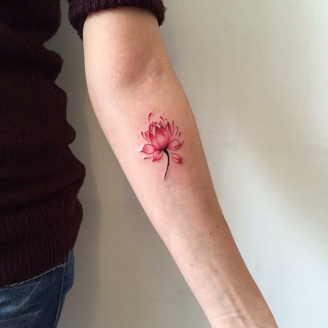 Лотос червоного кольору означає чистоту серця, почуття любові та пристрасті. Квітка блакитного кольору є знаком мудрості та знань. Татуювання із зображенням лотоса однаково популярне серед представників чоловічої та жіночої статей.