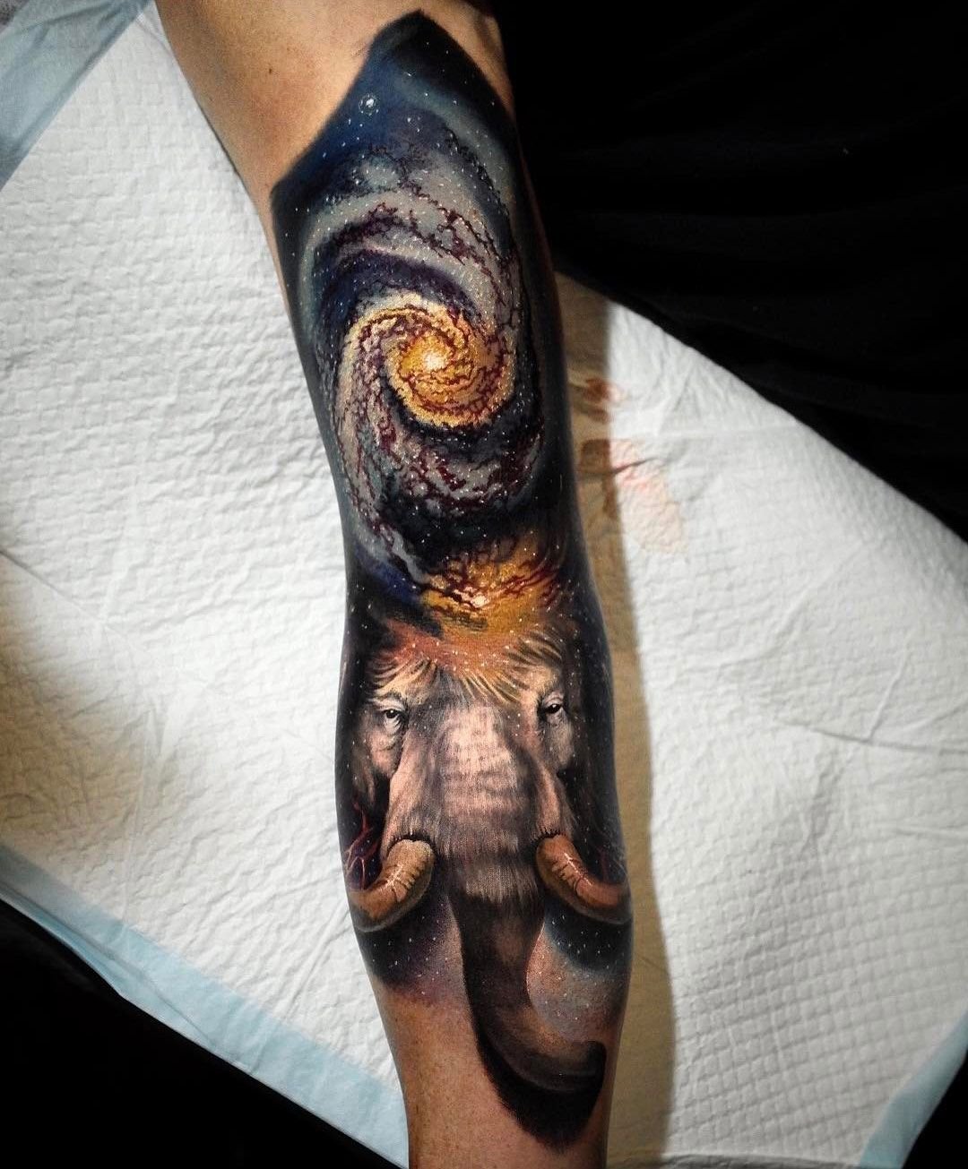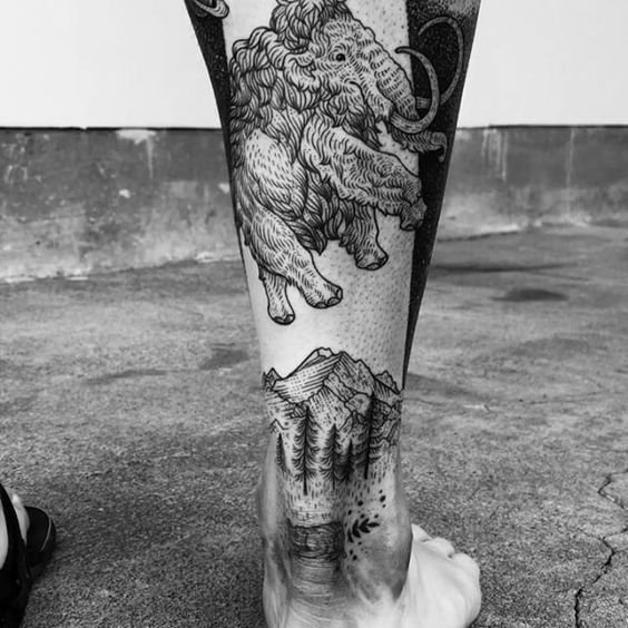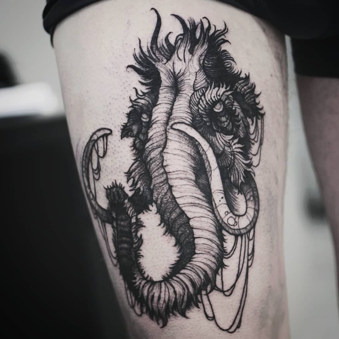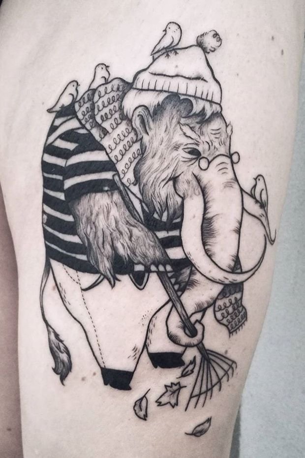 Одним з основних моментів цього тату є об'ємність зображення. Оскільки й сама тварина була великих розмірів, місця для мамонта має бути досить для деталізації картинки.