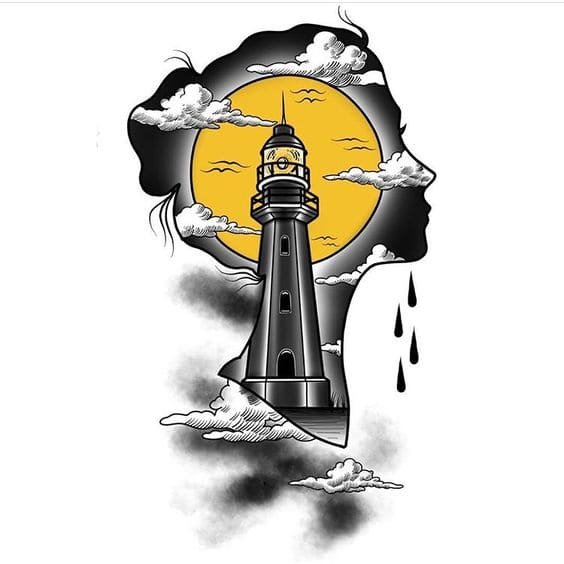 Це може бути гомілка, де роботу можна доповнити клаптиком землі поруч, морем, кораблем неподалік, скелями, рибами та іншими морськими мешканцями. На стегні місця буде дещо більше, тут можна показати картинку шторму й корабля, який шукає шлях додому. Якраз маяк на татуюванні буде вказувати на його суть: допомога в розташуванні та орієнтуванні в безкрайніх водах моря або океану.