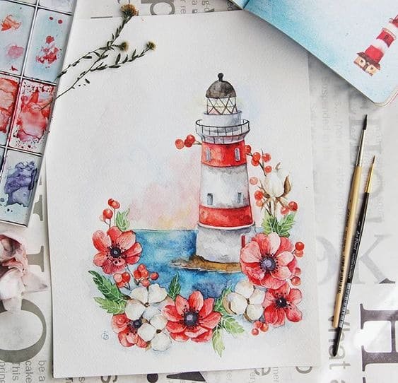 Колірний діапазон можна вибрати на свій розсуд, додаючи вкраплення відтінків для надання більшої об'ємності малюнка. Сам маяк може бути зображений темним зі світлом лампи, корабель також може губитися у хвилях, освітлюваний тільки місяцем. Відблиски на морській гладі теж будуть доречні. Крім того, маяк також може бути без світла, вказуючи на те, що на березі більше ніхто не чекає.