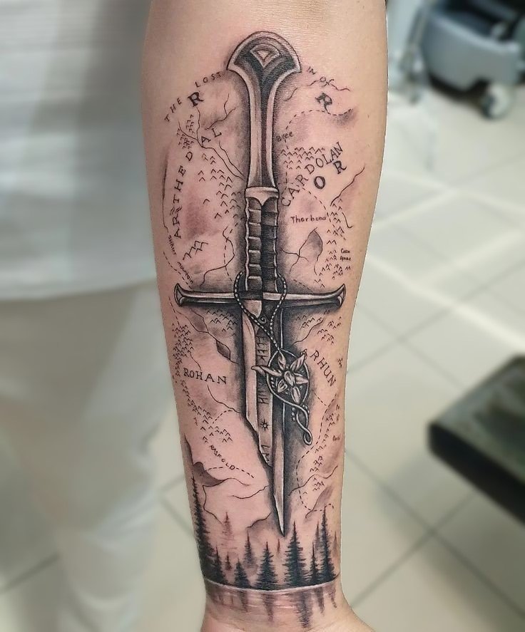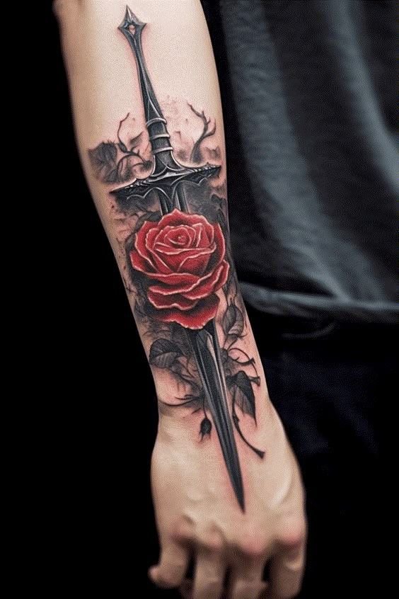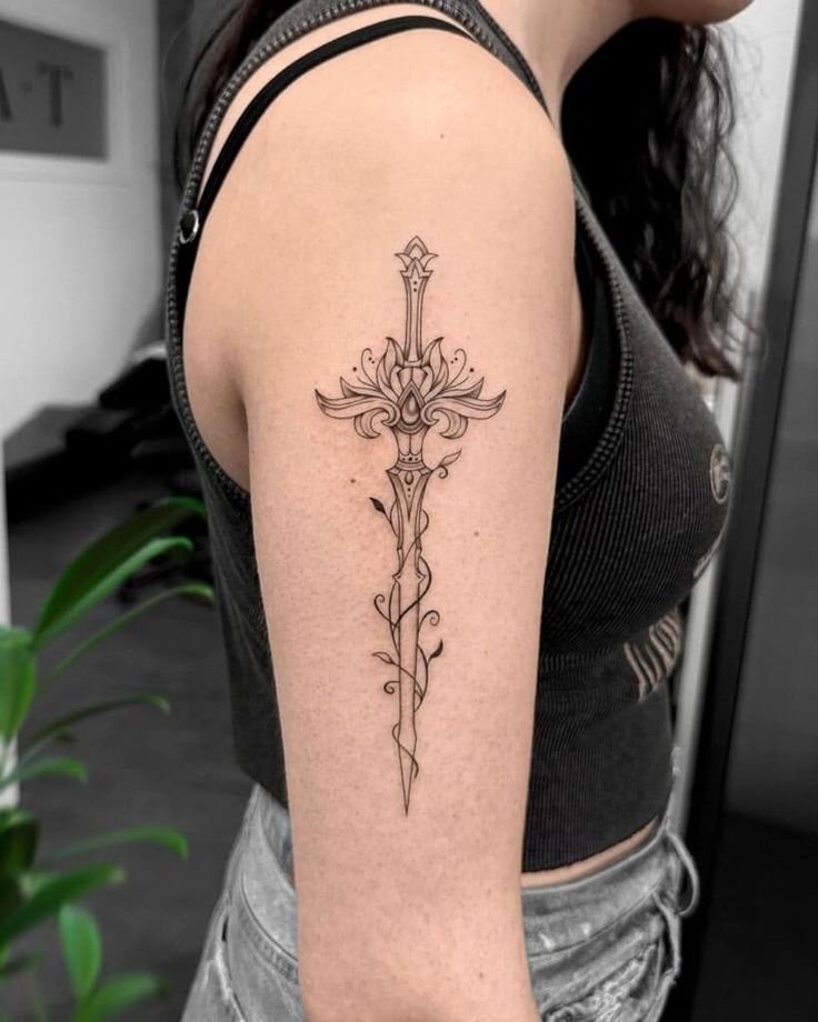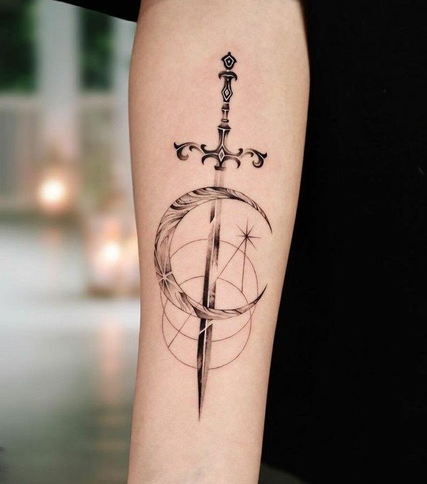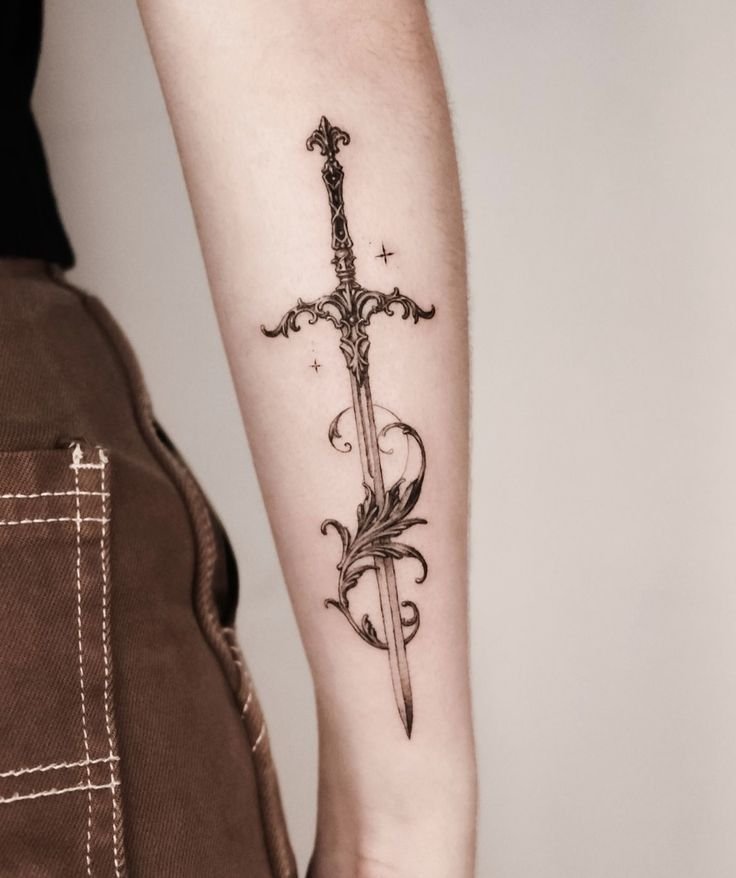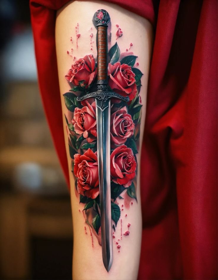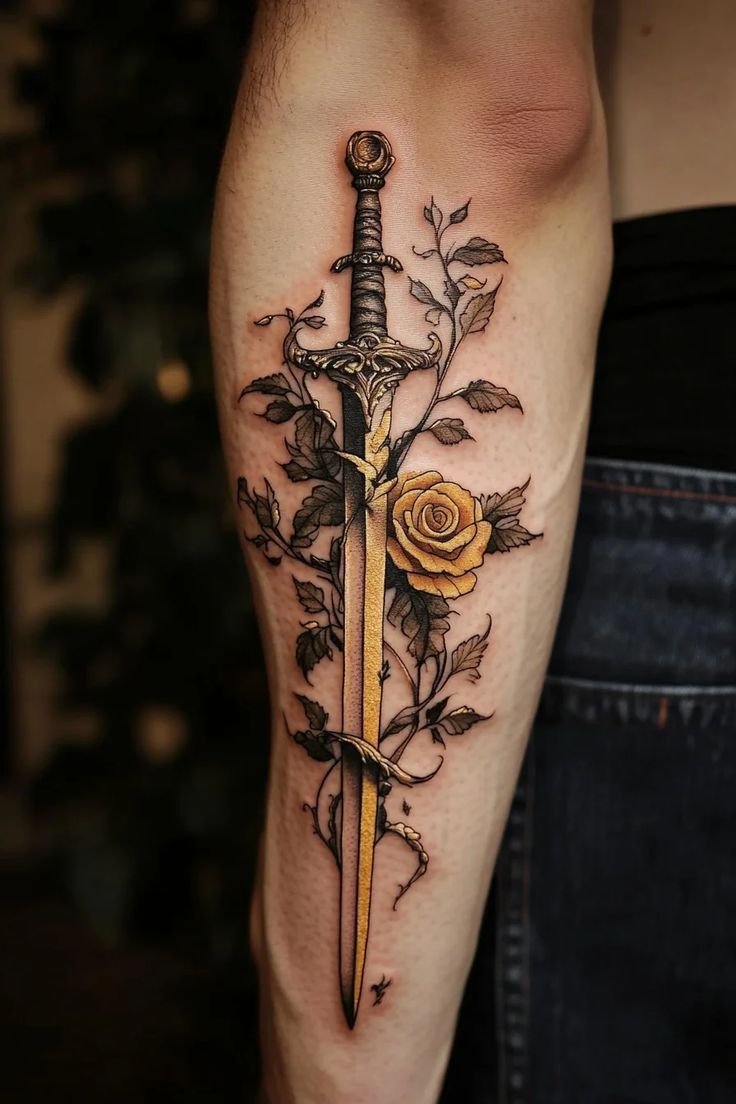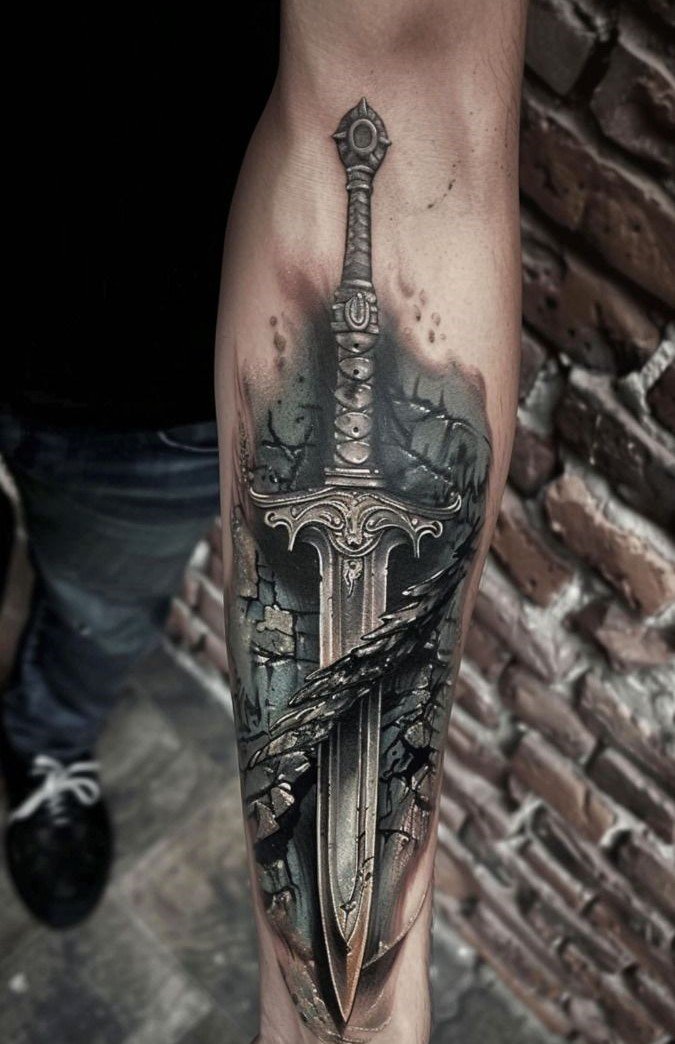 Татуювання з мечем несе у собі величне, глибоке значення.