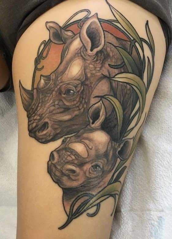 Хлопці обирають плечову частину, де на м'язовій масі робота виглядає агресивніше. Це ж стосується й ніг: в самих прокачаних зонах й місця більше, та робота виглядає куди цікавіше. Також зобразити ескіз носоріг можна і на спині, де достатньо місця для нанесення додаткових елементів, таких як флора та фауна. Прикрасити тварину можна в різні кольори, що дозволить додати оригінальності та зробити роботу неповторною.