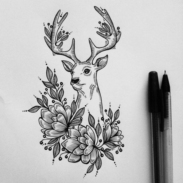Для деяких натільні малюнки несуть особливе значення, іншим просто подобається певна тварина, треті таким чином прикрашають своє тіло. Одним з найпопулярніших зображень тварин є благородний олень. Багатьох олень привертає своїм благородним виглядом, міцними, гіллястими рогами, своєю сміливістю та красою. Татуювання із зображенням оленя може виконуватися в будь-якому стилі, напрямку, це може бути реалістичне зображення, абстрактне, геометричне, акварельне й т.д. Може містити об'єднання деяких стилів, виглядати при цьому малюнок буде дуже оригінально та унікально. Такий натільний малюнок вибирають особи обох статей, чоловіки обирають зображення самця оленя, а жінки самку або оленят. Зображуватися може олень в повний зріст, у всій красі, а може бути зображення його голови, все залежить від місця нанесення малюнка та від побажань клієнта.