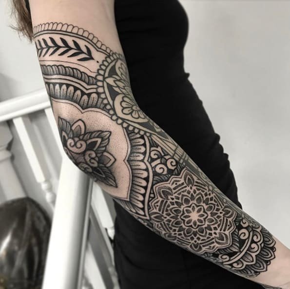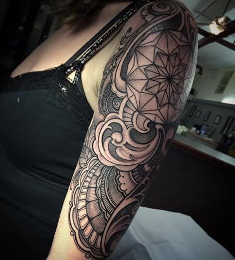 Тату орнаментал містять в собі безліч елементів у вигляді хвиль, спіралей, рослин, геометричних фігур, вузлів.