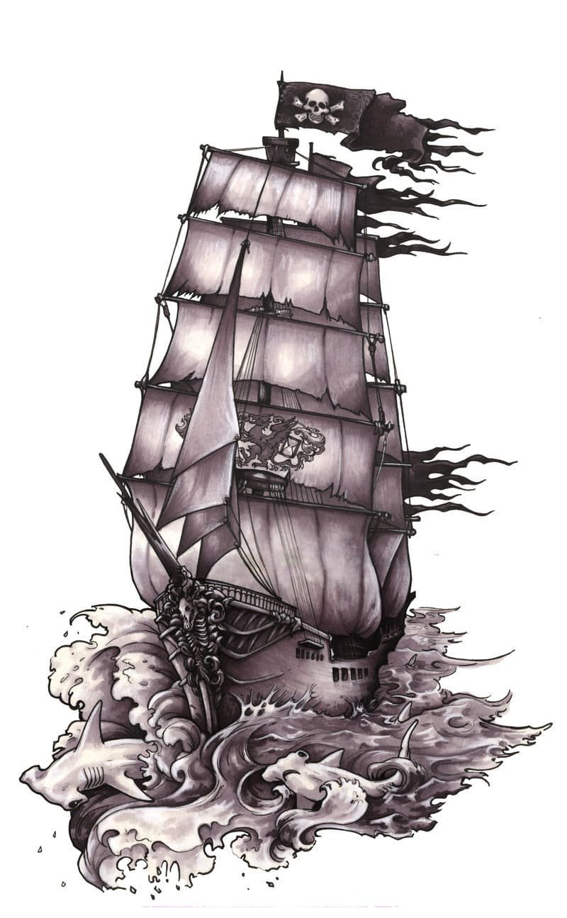 Тату ескіз вітрильника, корабля, часто обирають для тату і представниці прекрасної половини.