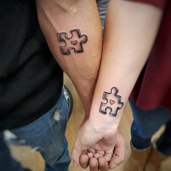 Також, пазл досить часто виступає в ролі парної тату. Таким чином пара демонструє, що дві половинки знайшли один одного, й вдало скріпилися. Так дівчина і хлопець кажуть всьому світу, що вони не можуть один без одного, адже тоді пазл - незавершений.
