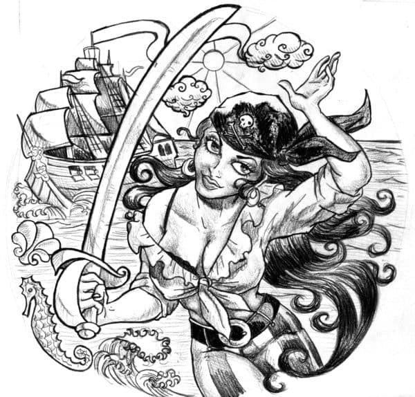 Багато хто вважає що тату з піратом - це виключно чоловіча тематика, але це зовсім не так.
