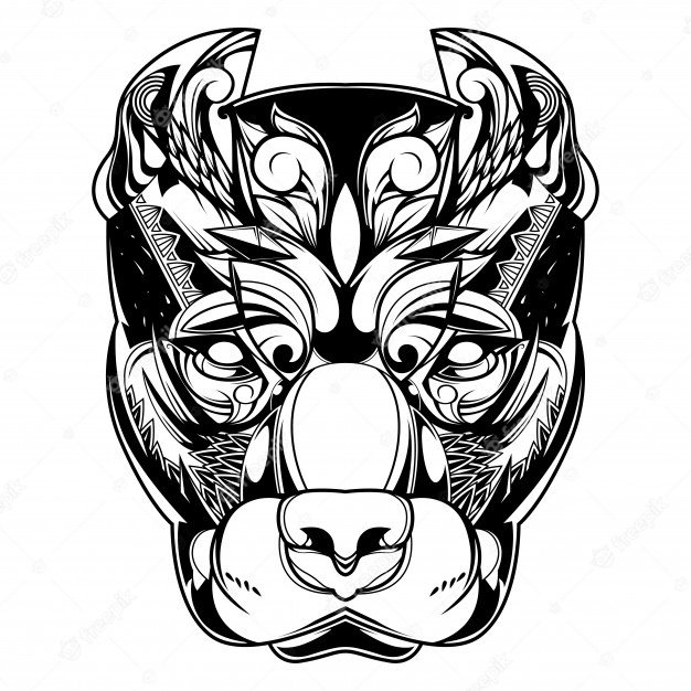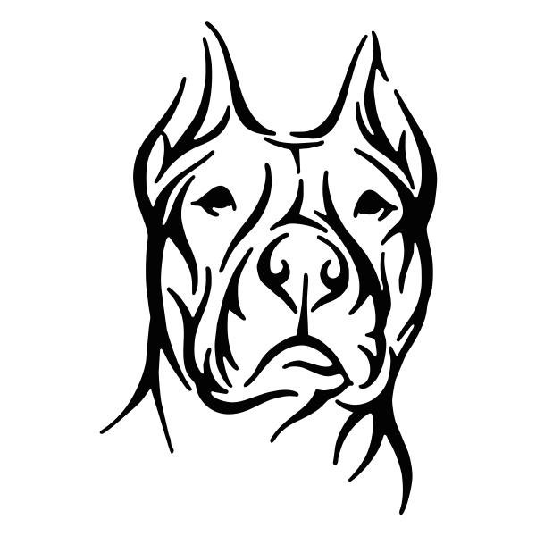 У другому випадку акцент робиться на погляд пса і його пащу, які висловлюють спокій або агресивний настрій. Як правило, пес зображується з купейними вушками та глибокими зморшками.