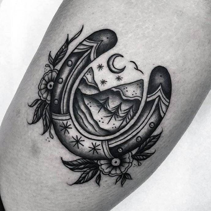 Тату-ескіз підкови універсальний, має попит як серед сильної, так і серед слабкої половини.