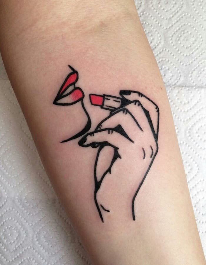 В основному татуювання помади невеликі, тому чудово виглядають на зап'ясті, а також на ключиці та передпліччі. Досить часто зображують тату помади в жіночій ручці, тим самим отримуючи максимально красиву і витончену роботу.