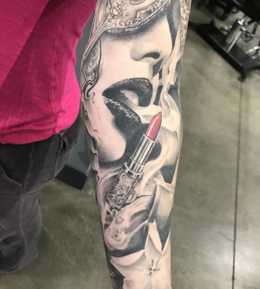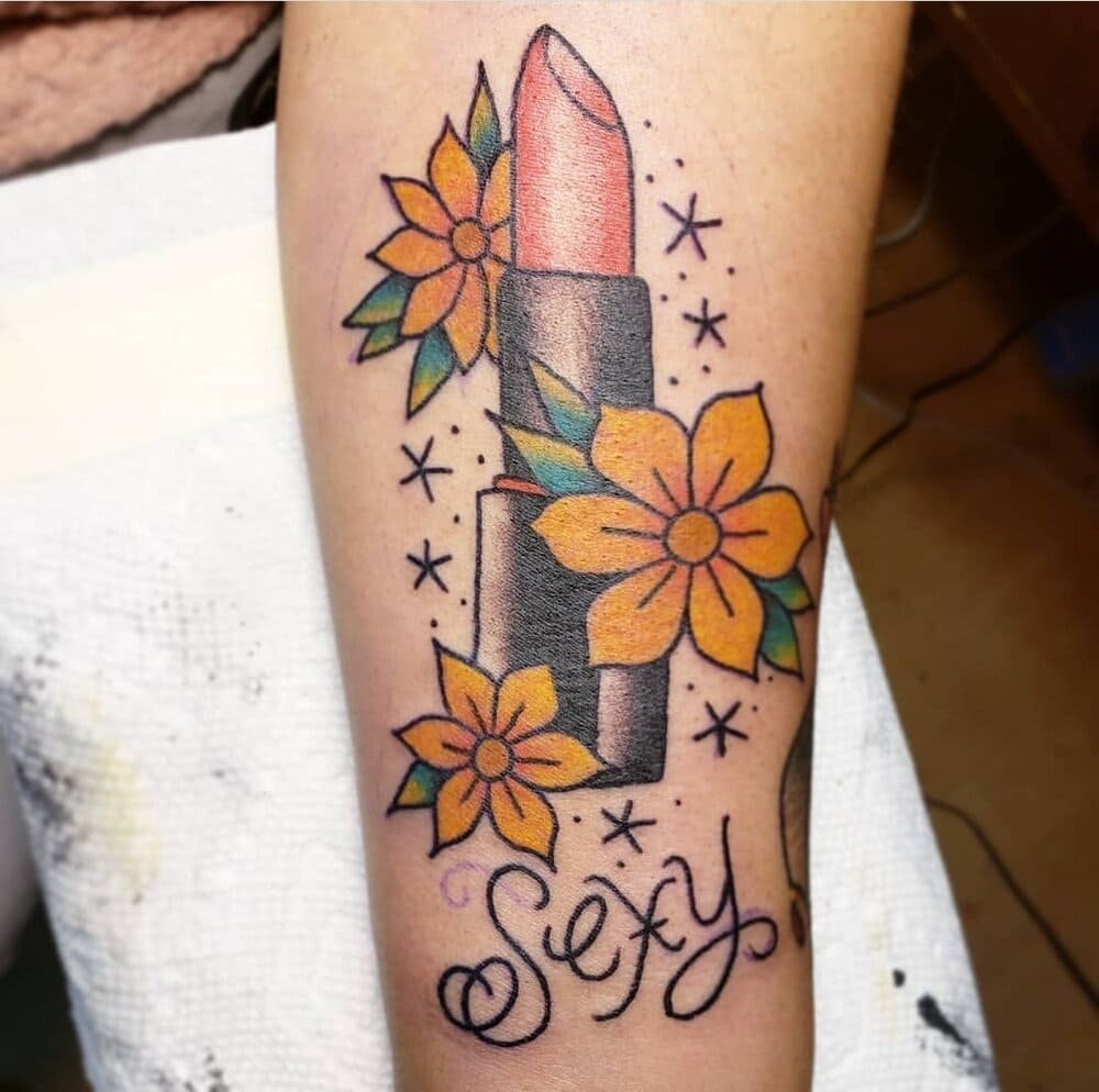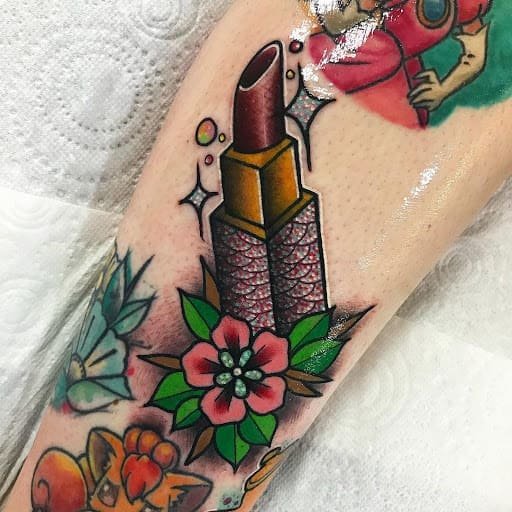 Власниця такого ескізу, тату помади, буде володіти тільки приємними якостями, залучати жіночністю і м'яким характером. Також варто звернути особливу увагу на деталі виконання татуювання. Зображення помади може бути доповнена різними елементами з жіночої косметички, це можуть бути: