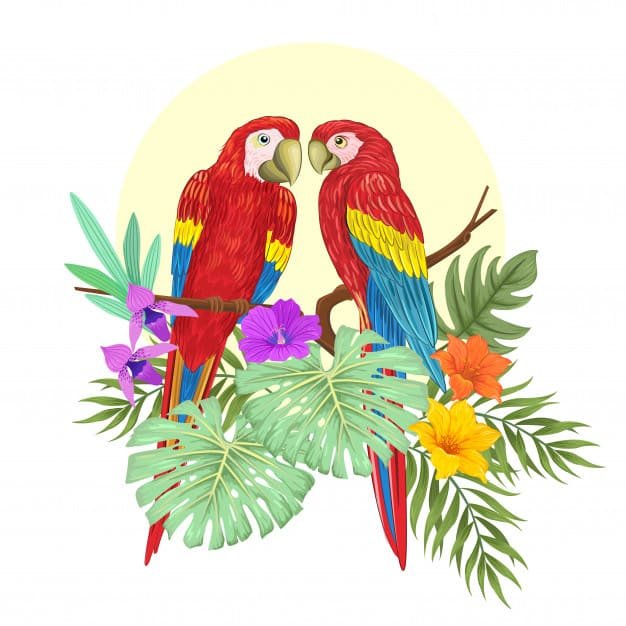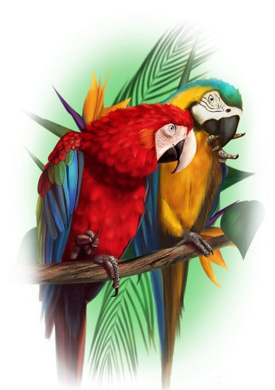 Дуже ефектно та барвисто виглядає на тілі саме забарвлення папуги, адже воно наповнено найрізноманітнішими кольорами. В основному зображується тату папуги з різними елементами, які гармонійно доповнюють цілісність картини. Це можуть бути: