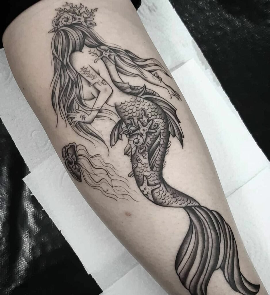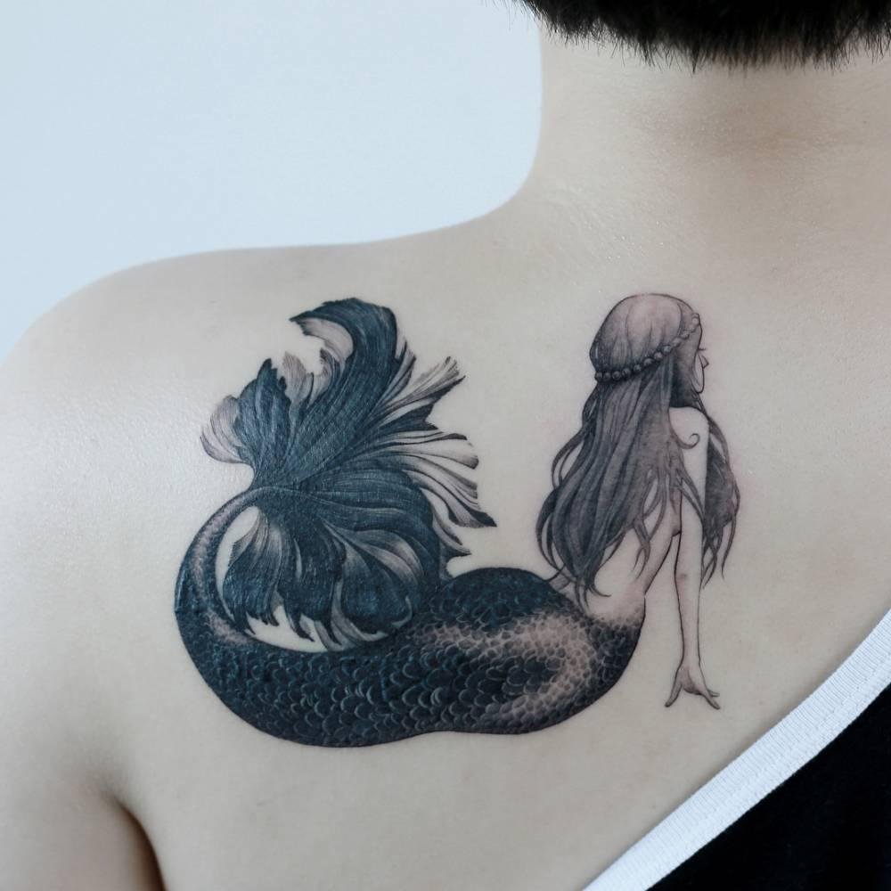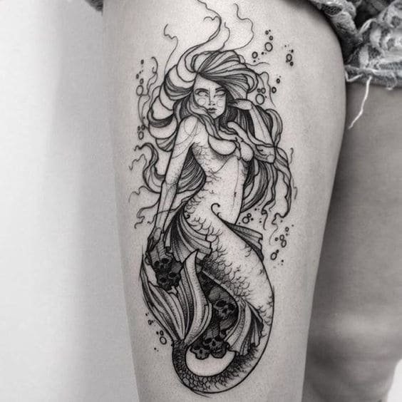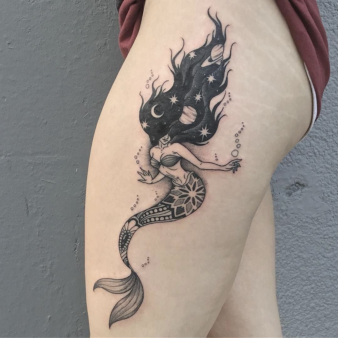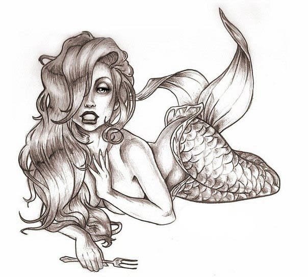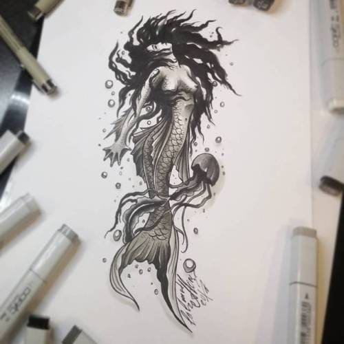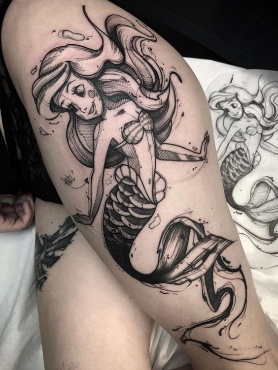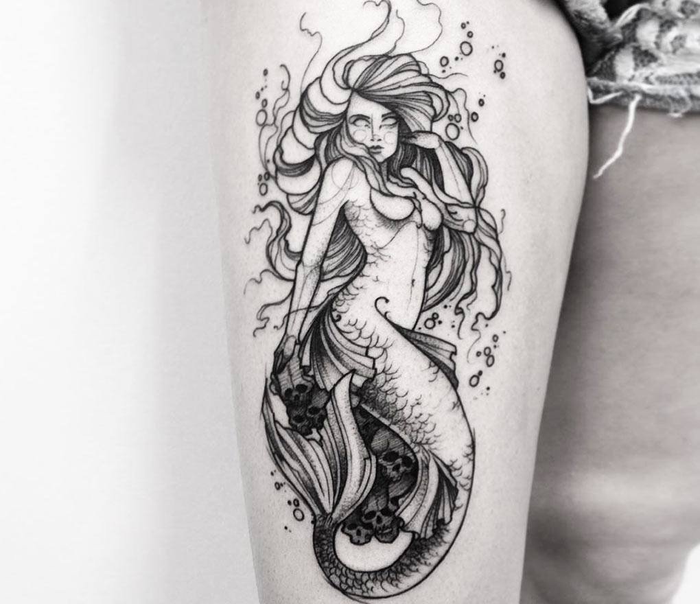 Вибираючи ескіз русалки для тату, варто пам'ятати що морська діва вимагає чималих масштабів, щоб розкритися у всій своїй красі.