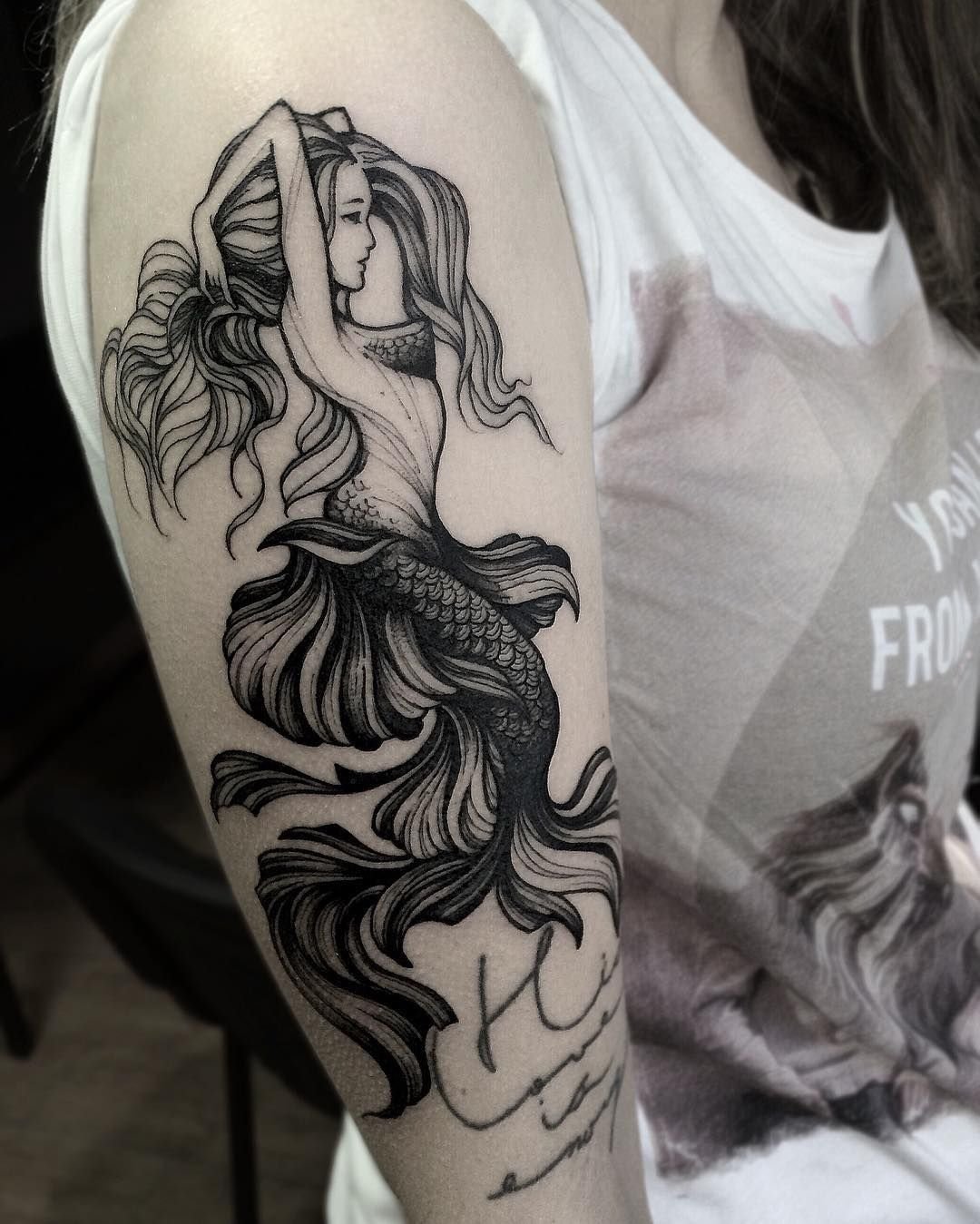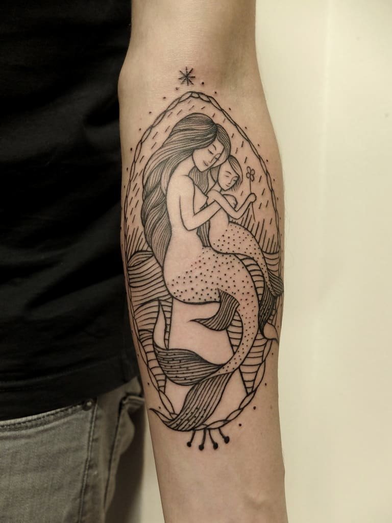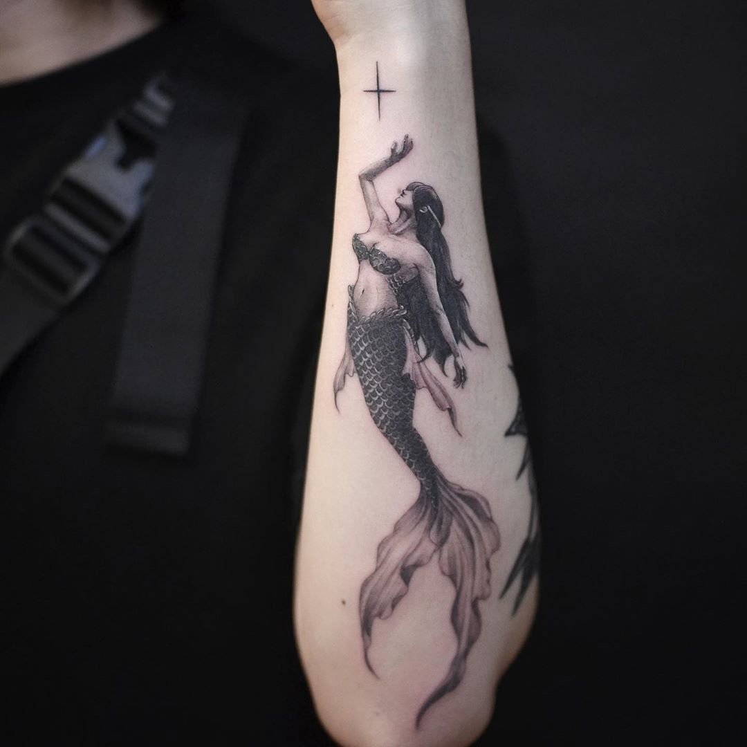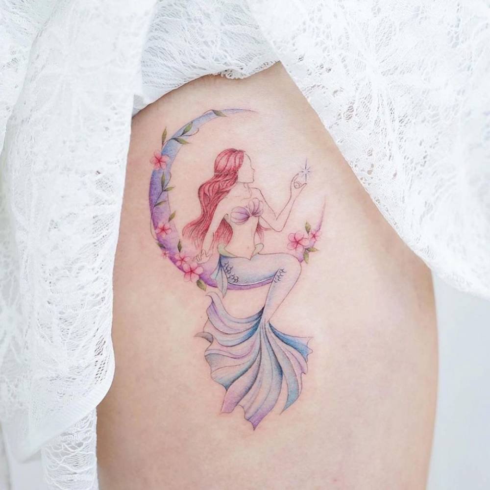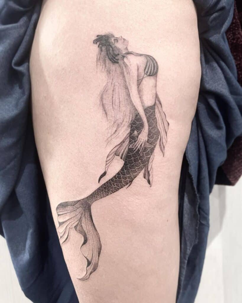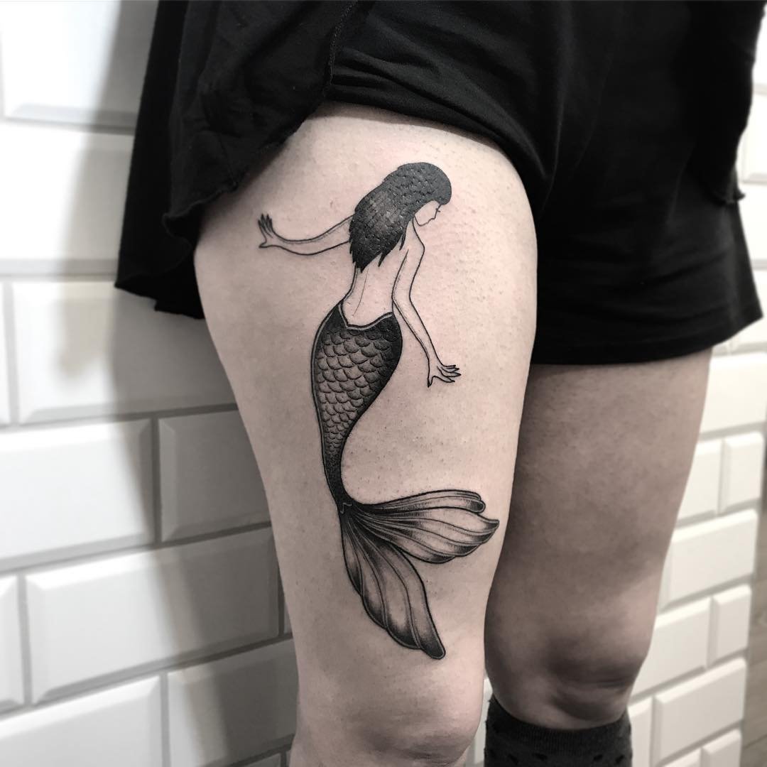 Вибираючи ескіз русалки для тату, варто пам'ятати що морська діва вимагає чималих масштабів, щоб розкритися у всій своїй красі.