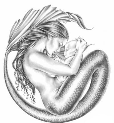 Тату ескіз "русалка" несе в собі жіночу енергетику, небезпечну красу, сексуальність, завороженість та божественність.