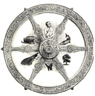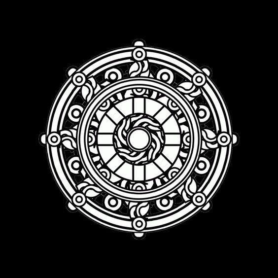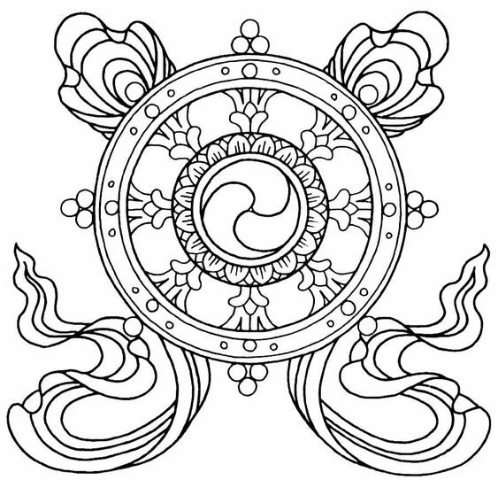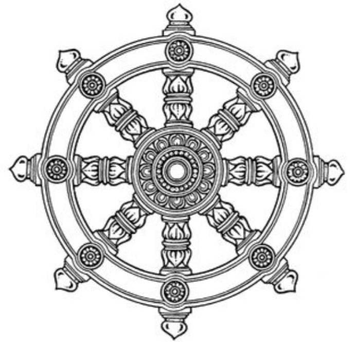 Сансара зображується у формі кола, що позначає: циклічність світу і його постійні зміни, нескінченний потік безперервного часу, оновлення та реінкарнацію.