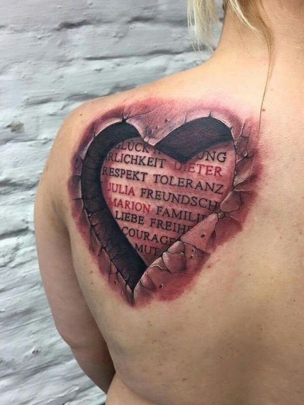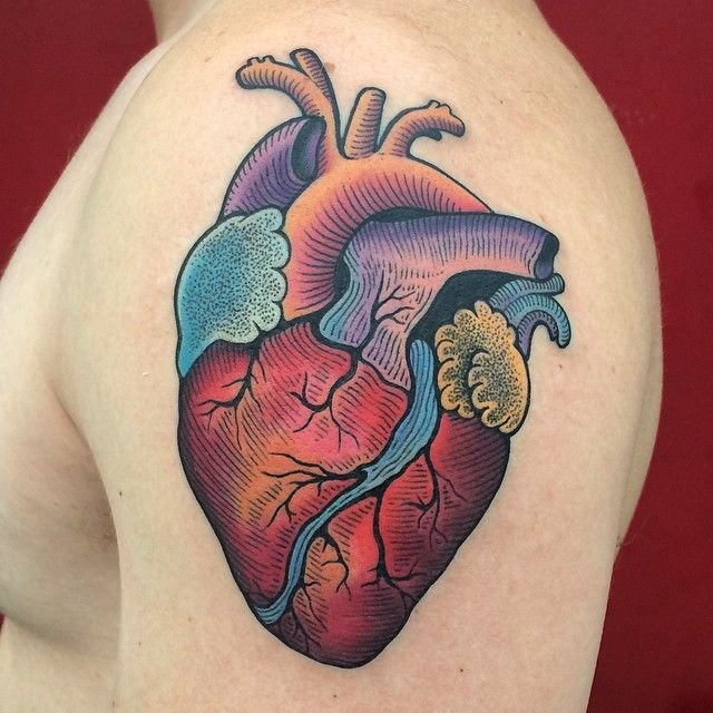 Найпоширенішим варіантом татуювання є серце з написом. Зазвичай напис зображують безпосередньо на самому органі, або ж на стрічці, що обвиває джерело життя. Класичне зображення серця з написом "мама", дані натільні зображення носили навіть байкери, а так само матроси та військові люди. За часів боїв татуювання надавала силу і віру людині, що скоро все закінчиться і він повернеться до сім'ї.