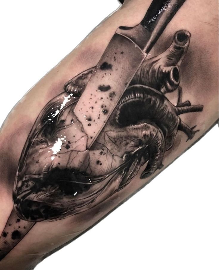 - Тату серця пробитого кинджалом говорить про зраду.