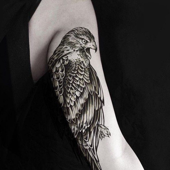 Тату сокола є універсальним, його вибирають як представники сильної статі, так і жінки.