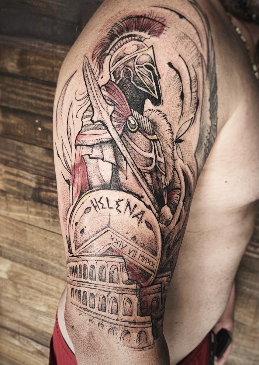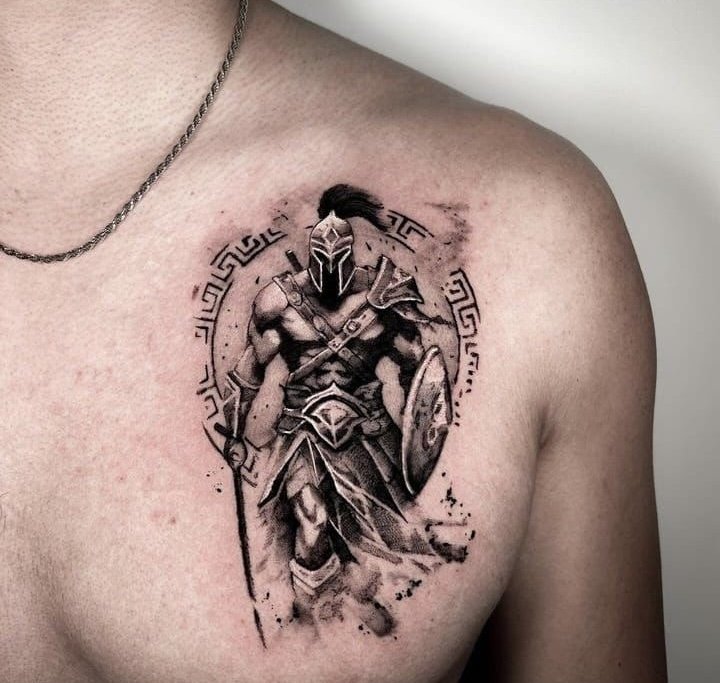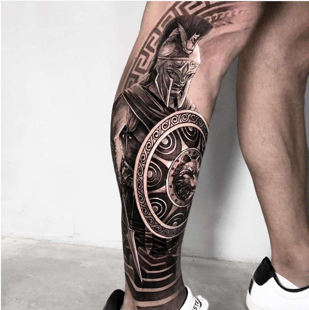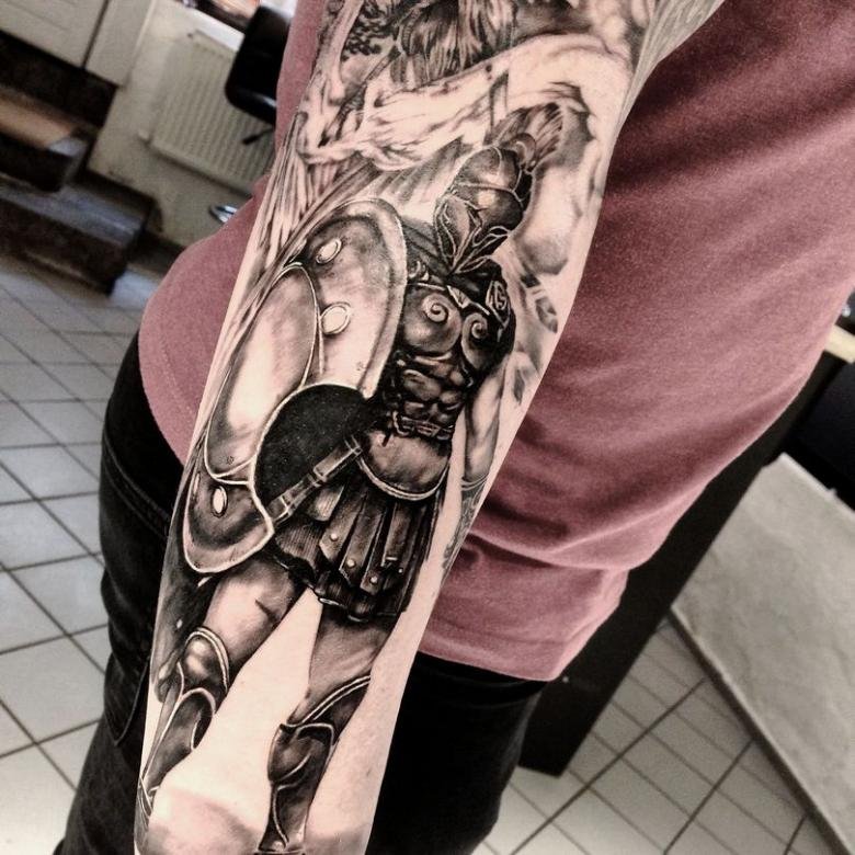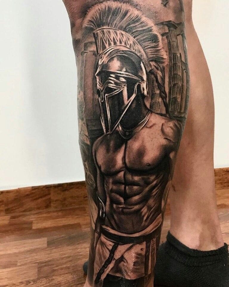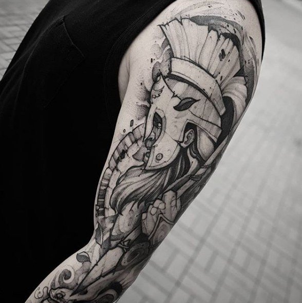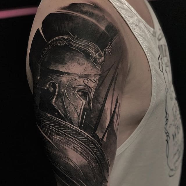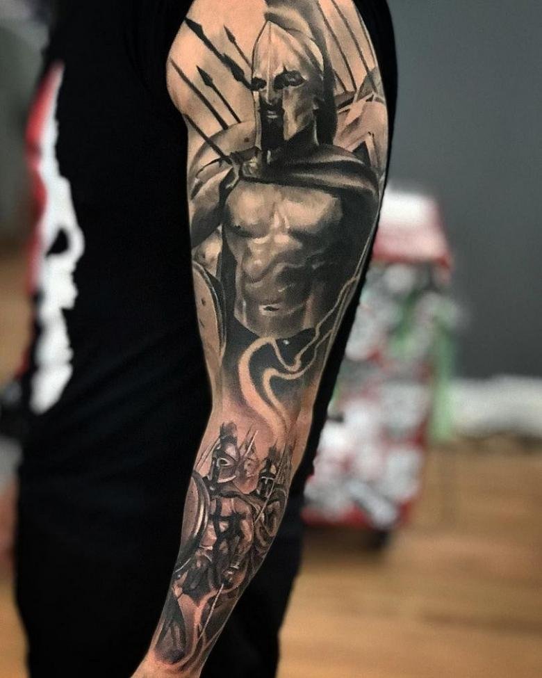 Тату "спартанець" найефектніше виглядає в реалістичному стилі.