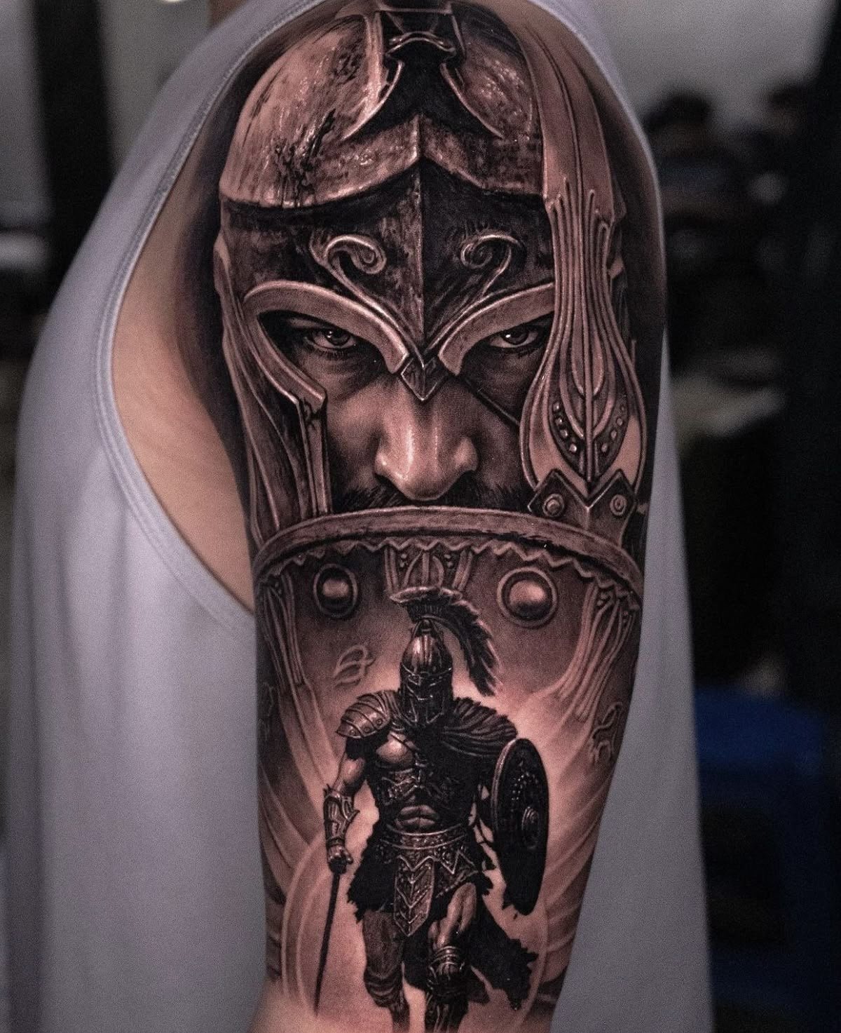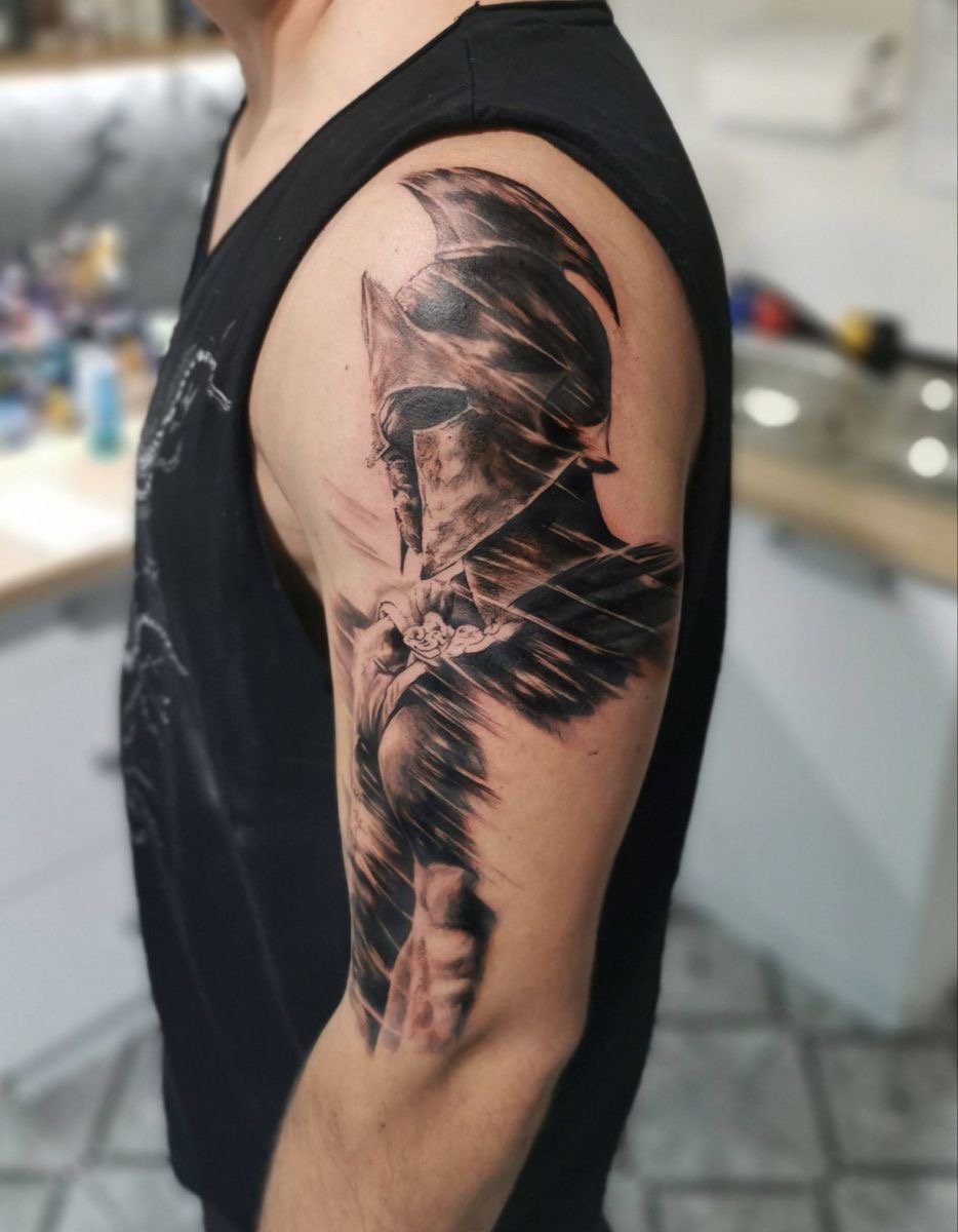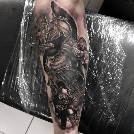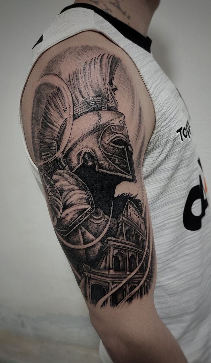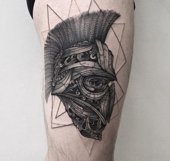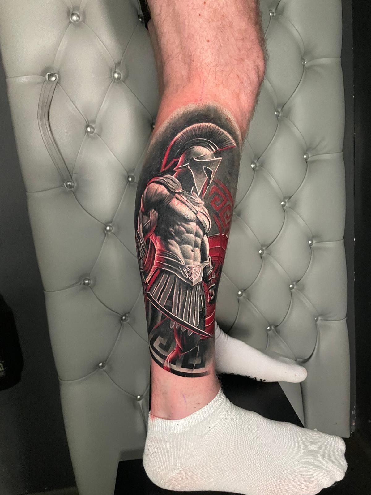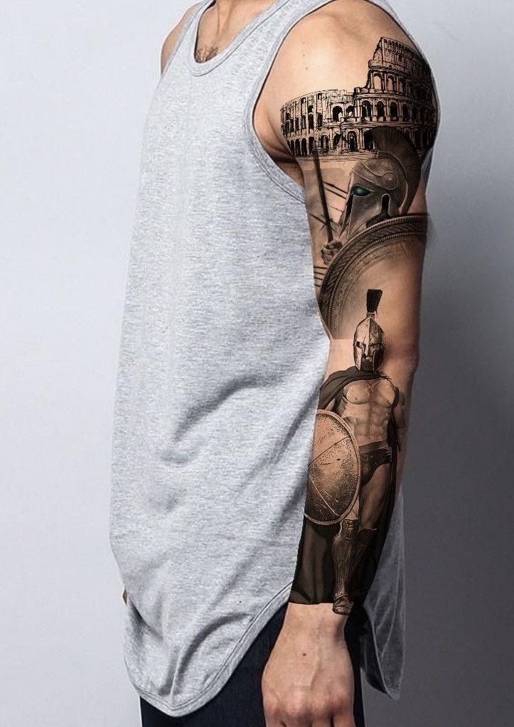 Тату "спартанець" найефектніше виглядає в реалістичному стилі.