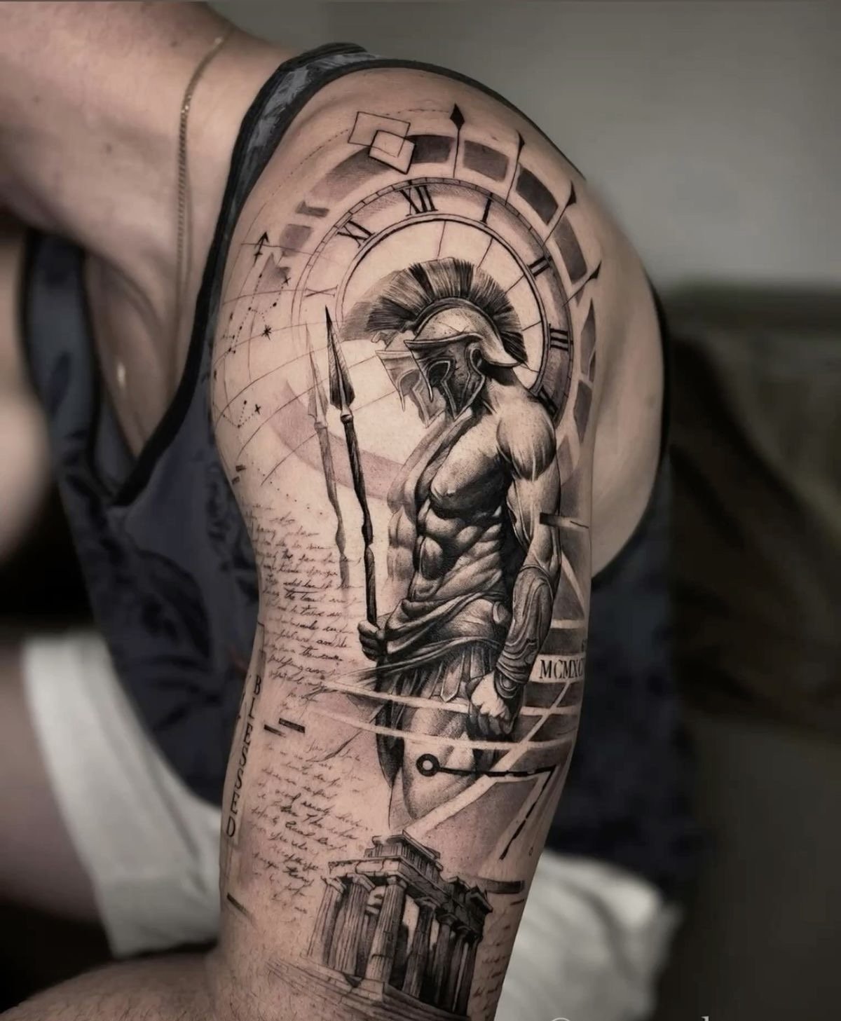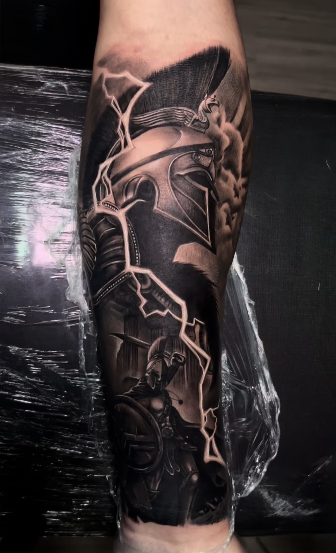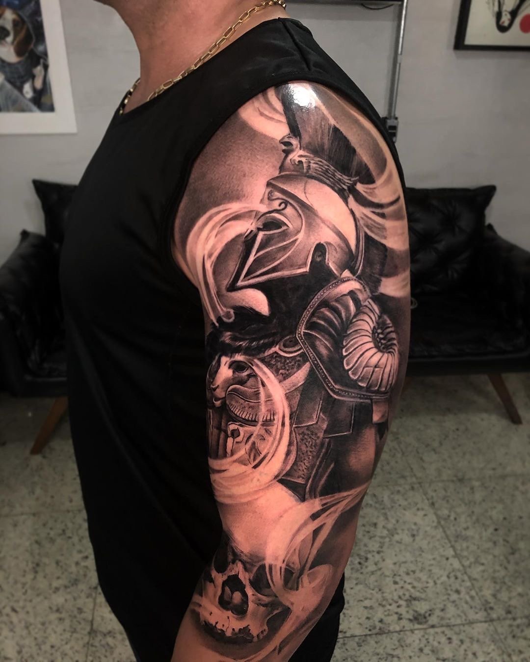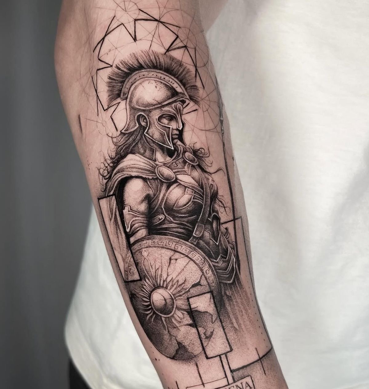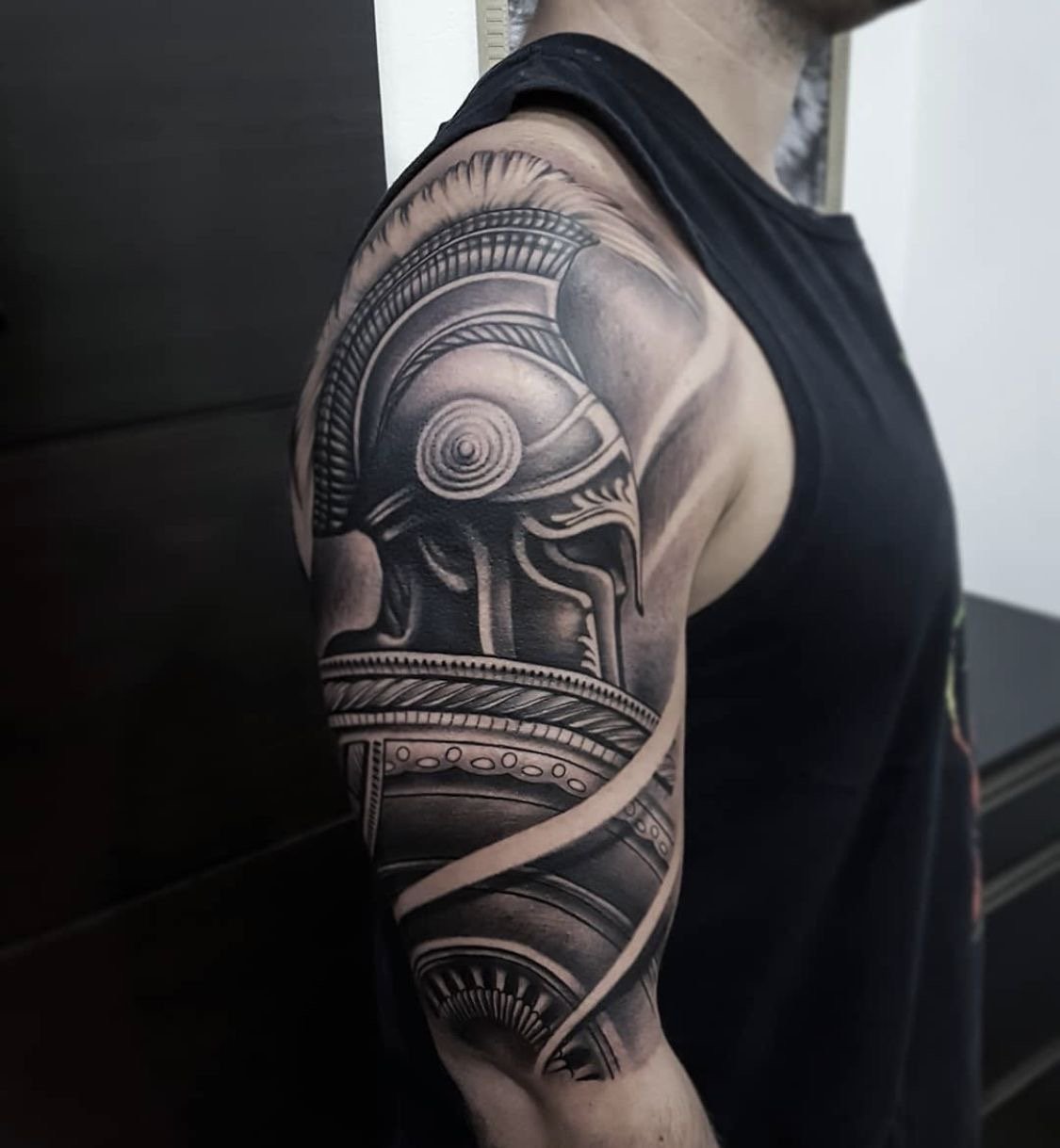 Тату "спартанець" найефектніше виглядає в реалістичному стилі.