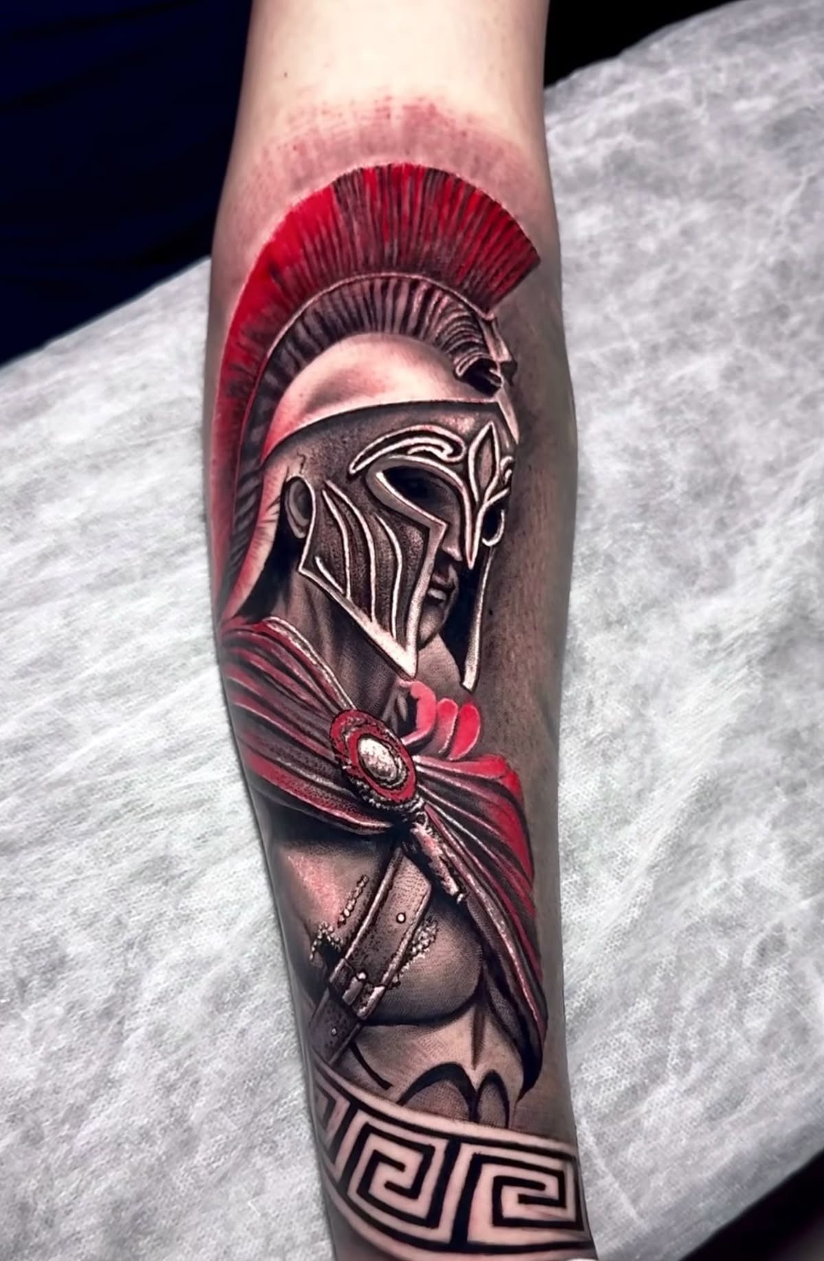 Але, тут важливо вибрати хорошого, досвідченого майстра, оскільки реалізм досить складний стиль, що вимагає особливих знань та чималого досвіду. Досвідчений майстер зможе повною мірою передати весь сюжет татуювання, втілити емоції спартанця, в кольорах висловити всю міць зображення.
