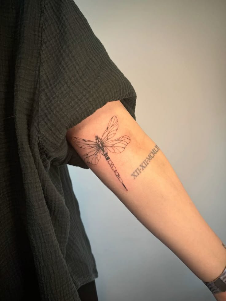 Ці комахи проходять складний процес перетворення, що робить їх уособленням змін і духовного зростання. Вони швидко реагують на зовнішні обставини, залишаючись при цьому вільними і незалежними. Сьогодні татуювання із зображенням бабки може символізувати силу, гнучкість мислення і вміння насолоджуватися моментом.