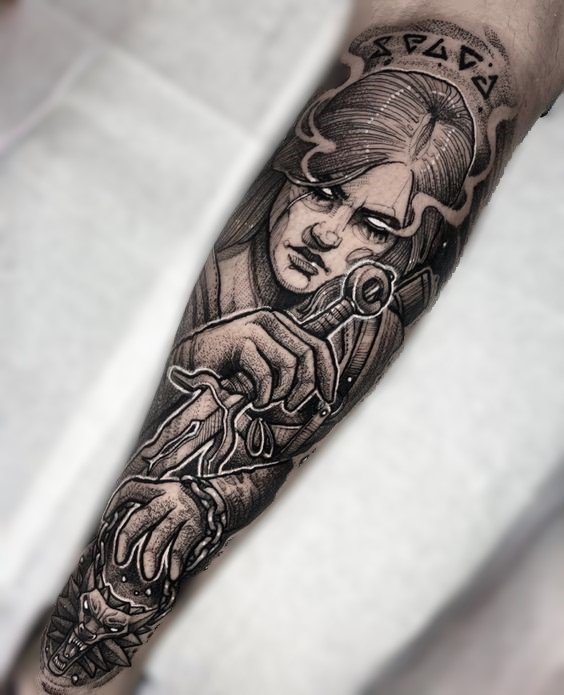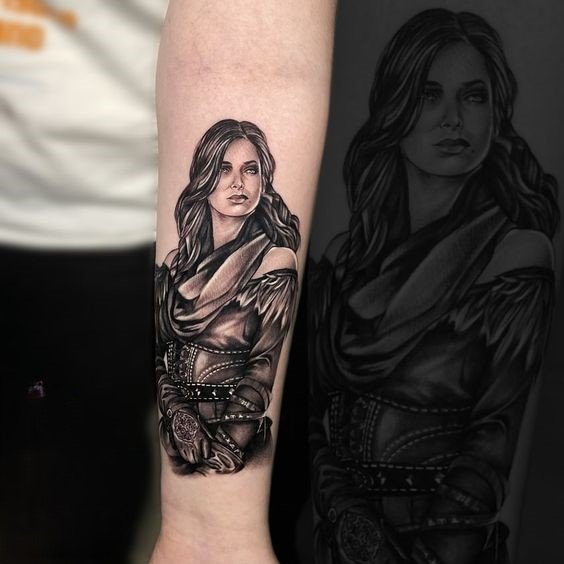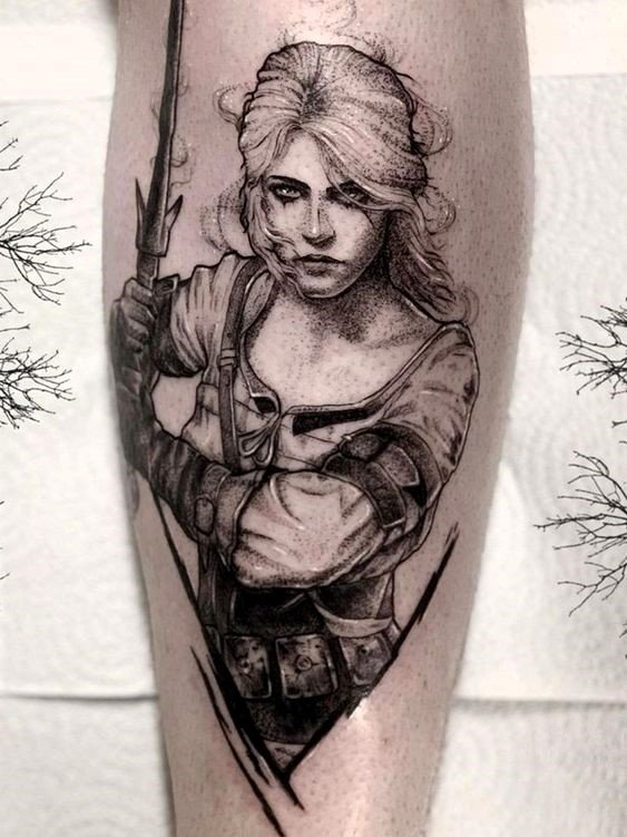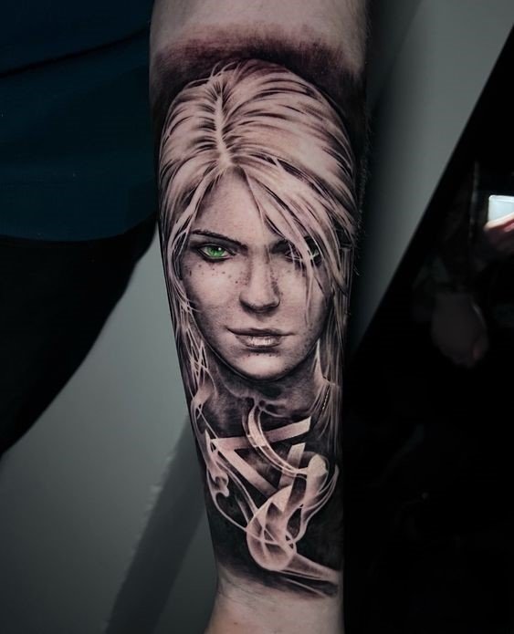 - Цирі, прийомна дочка Ґеральта, символізує надію, зміни та доленосні вибори. Татуювання з її образом може стати символом нового етапу в житті, вибору шляху або подолання труднощів.