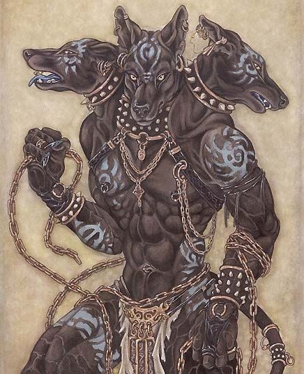 Цербер - відданий пес Аїда, який охороняв ворота чистилища. Ніхто з живого світу не міг просто так прийти в царство пекла, ніхто зі світу пекла не міг повернутися в царство живих. Цербер завжди був на чеку. Тільки дві голови могли спати, третя голова завжди була в дозорі. Пес завжди знав, що відбувається на його території, що охороняється.