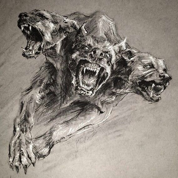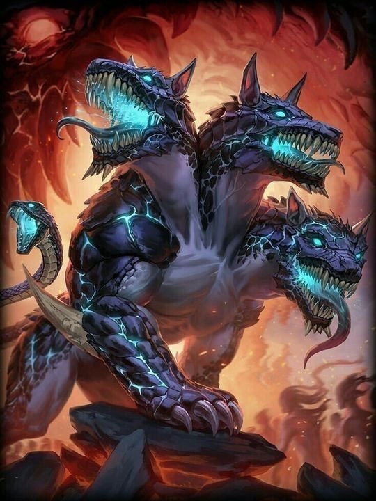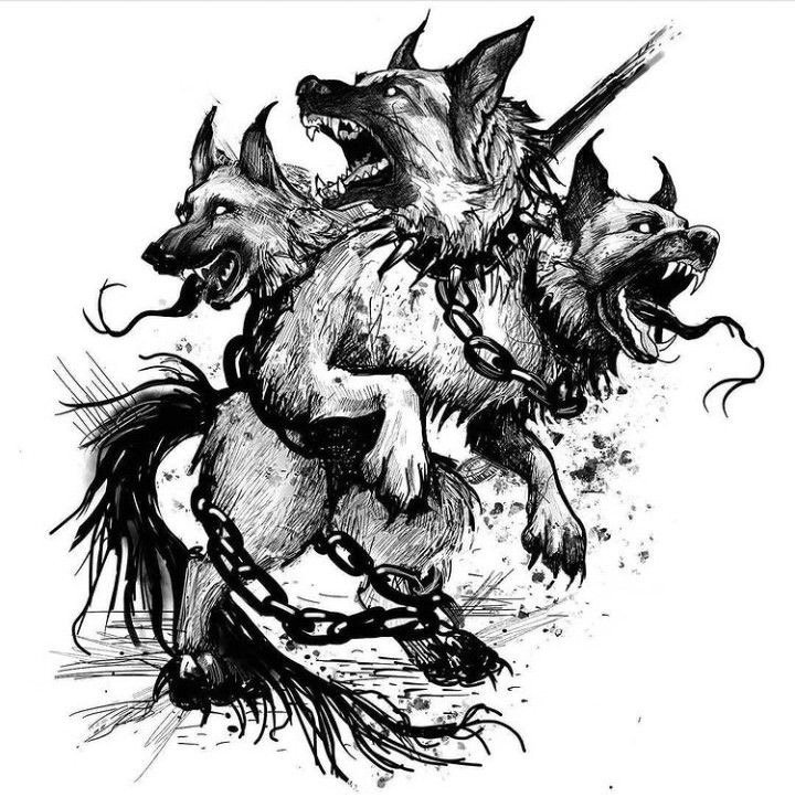 Цербер - відданий пес Аїда, який охороняв ворота чистилища. Ніхто з живого світу не міг просто так прийти в царство пекла, ніхто зі світу пекла не міг повернутися в царство живих. Цербер завжди був на чеку. Тільки дві голови могли спати, третя голова завжди була в дозорі. Пес завжди знав, що відбувається на його території, що охороняється.