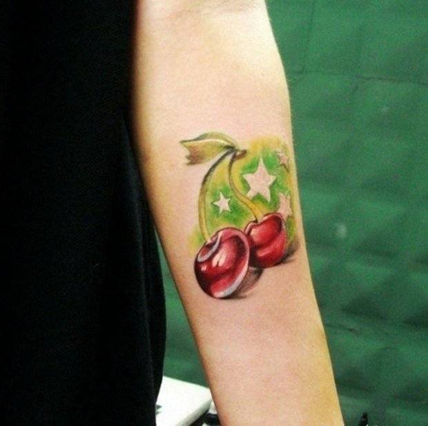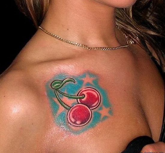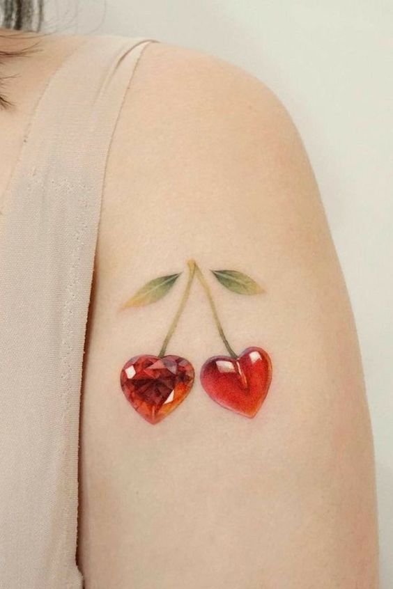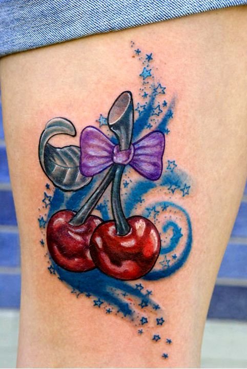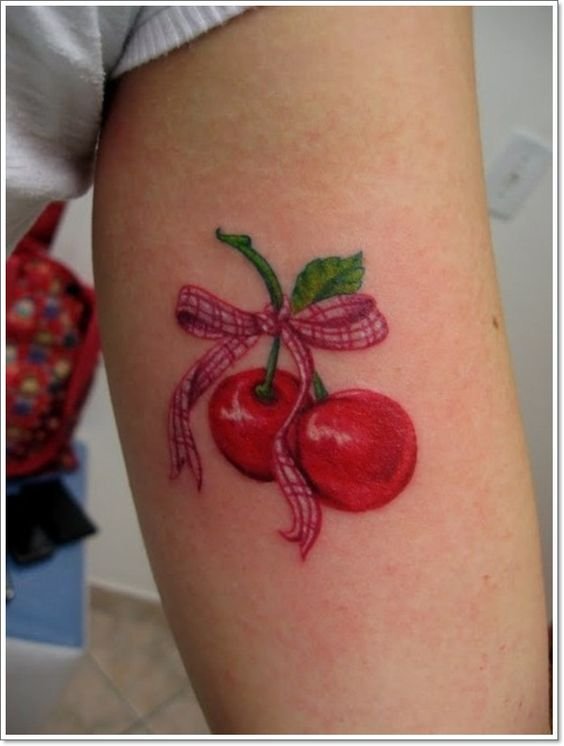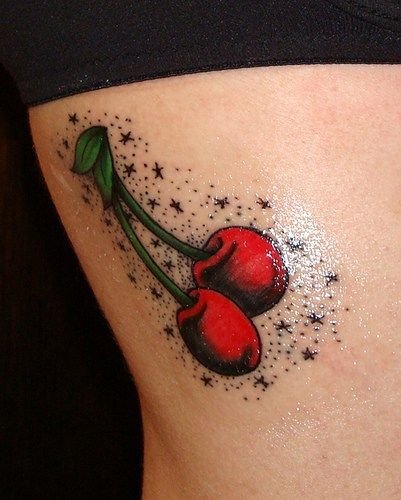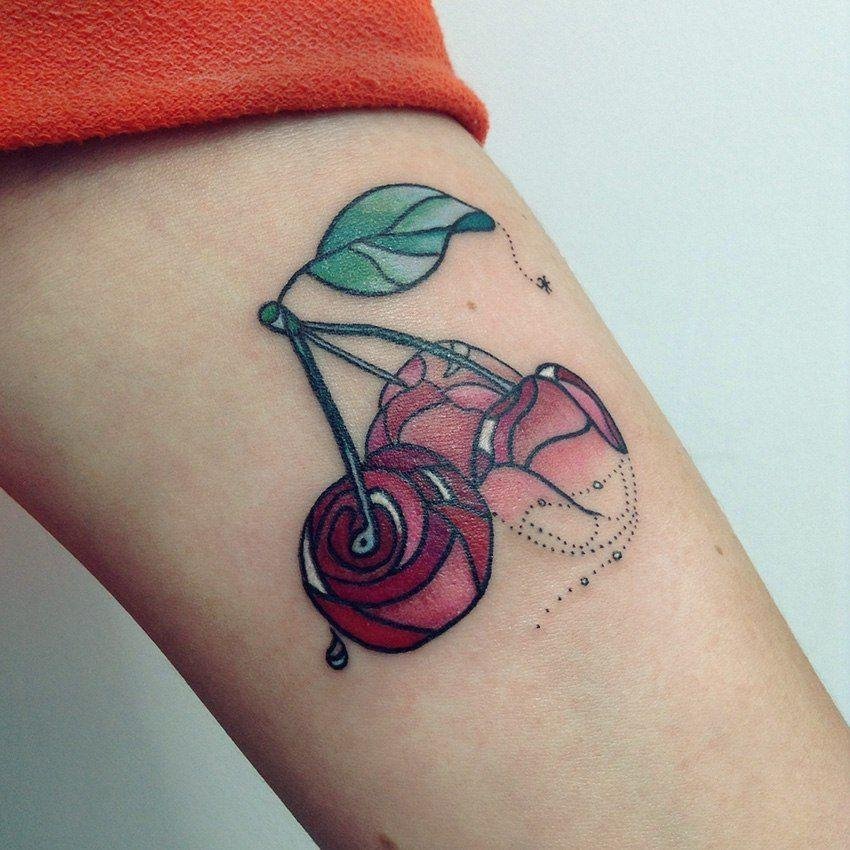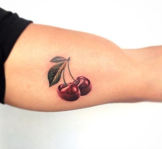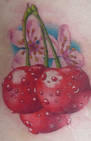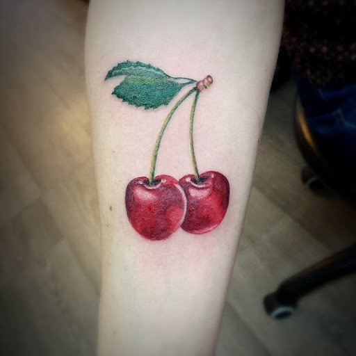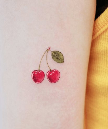 - Тату із зображеними ягодами вишні зазвичай говорить про невинність, ніжність, обережність.