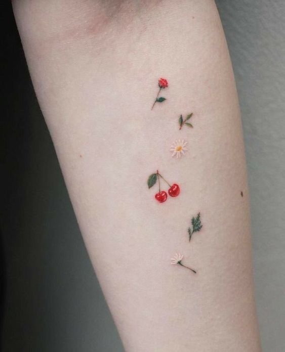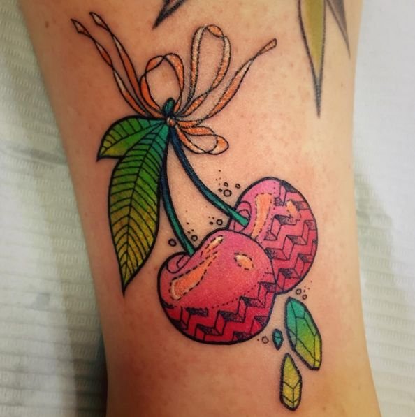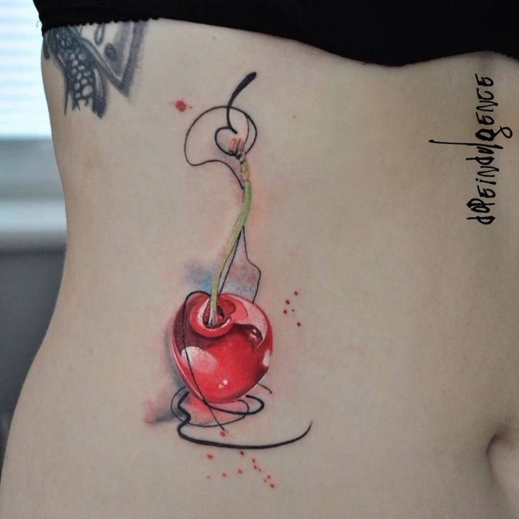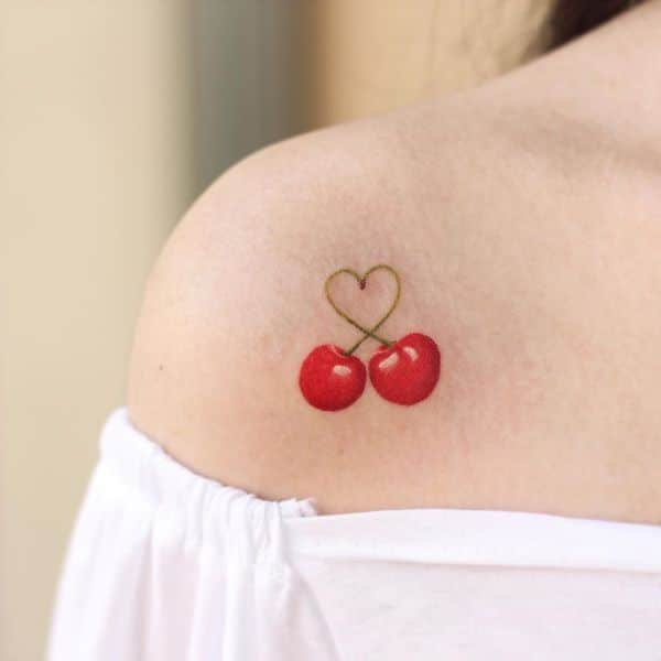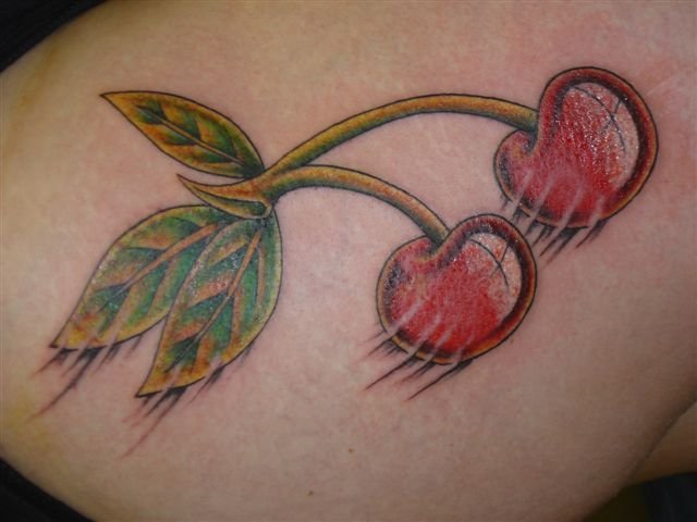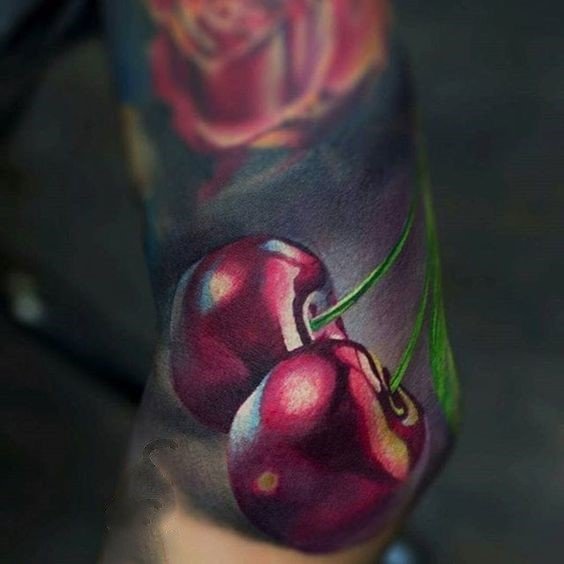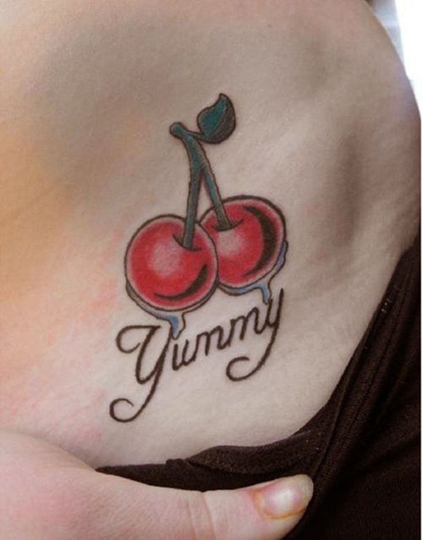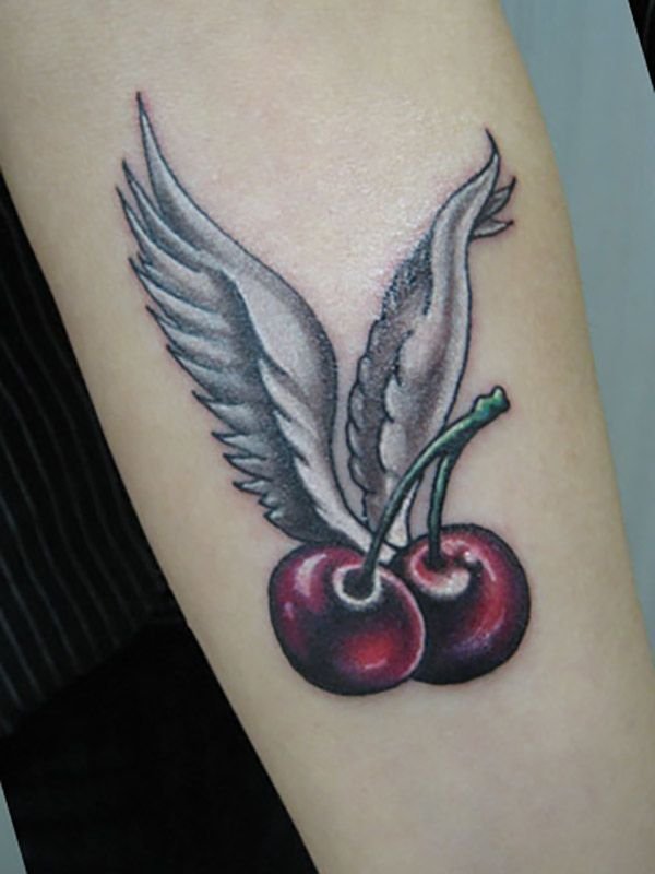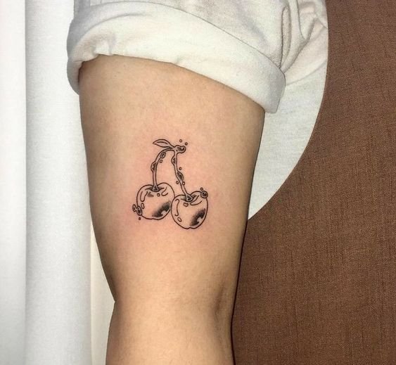 - Тату із зображеними ягодами вишні зазвичай говорить про невинність, ніжність, обережність.