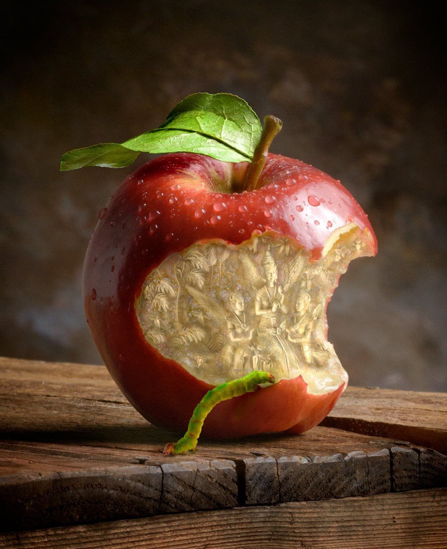 Яблуко є символом краси, здоров'я і молодості. Однак, часто ми чуємо порівняння людини з червивим яблуком, в тому випадку, коли людина намагається здатися набагато краще, ніж він є насправді.
