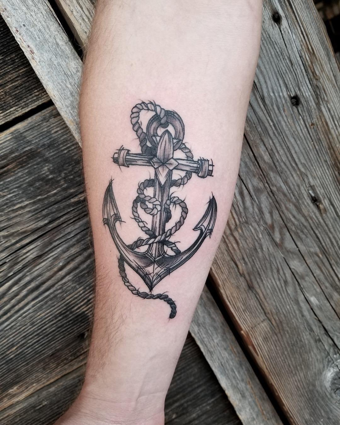 Для чоловіків тату з якорем найчастіше уособлює силу, чоловічу рішучість і стійкість.
