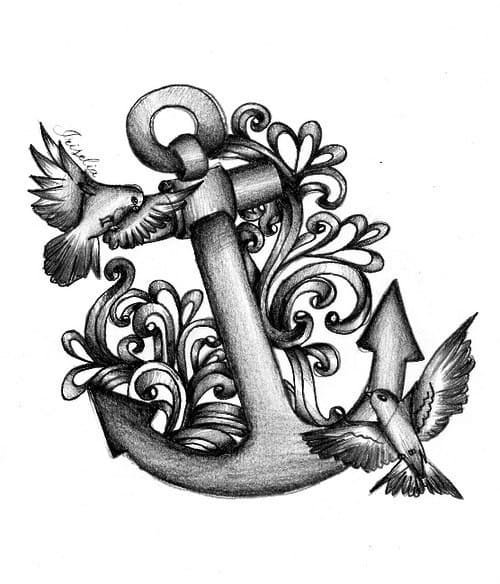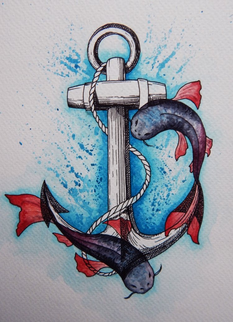 Він гармонійно виглядає в реалістичному виконанні, особливо якщо додати елементи морської тематики, як-от канати, вітрильники або ланцюги. Стиль традишнл також популярний для таких малюнків - це яскраві та чіткі контури, насичені кольори. Для любителів мінімалізму підійде просте і лаконічне зображення, виконане в чорному кольорі.