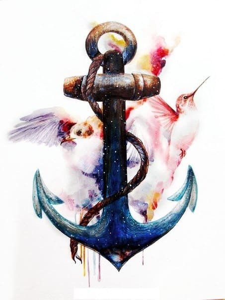 - «Тату з якорем має бути тільки чорно-білим» - багато хто обирає яскраві колірні рішення для такого зображення, щоб зробити його більш виразним.