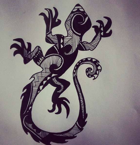 Ящірка виступала знаком швидкості та спритності, володіла хитрим складом розуму. Племена Маорі брали рептилій зеленого забарвлення уособленням демонів, але одночасно, вважалося що образ плазуна відштовхує злі сили. Тому тату ящірка служила для племені найпотужнішим оберегом, рептилії дали назву демон - покровитель.