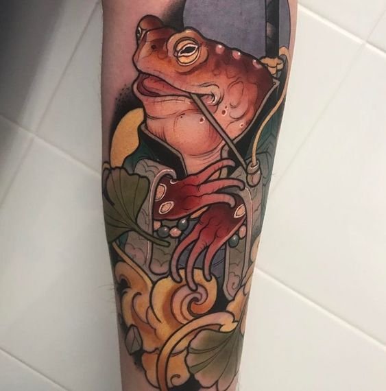 - Японці вважають, що зображення жаби притягує удачу та успіх у всіх починаннях. Так її зображення часто наносили на тіло мандрівники, щоб жаба оберігала їх й дозволяла успішно подорожувати.