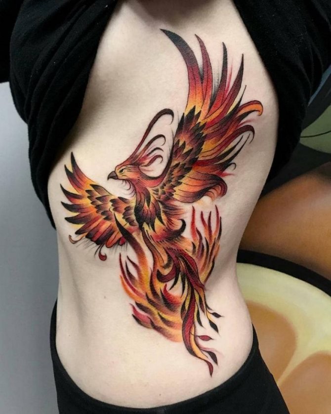 Перше, про що говорить татуювання з жар-птицею, це прагнення до відродження та безсмертя.