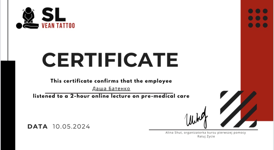 Мене звати Дар'я. Я починаюча тату-майстриня студії VEAN TATTOO у Кременчуці.