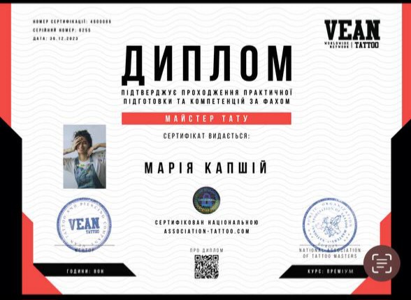 Тому мною було прийнято рішення пройти навчання в студії VEAN TATTOO.