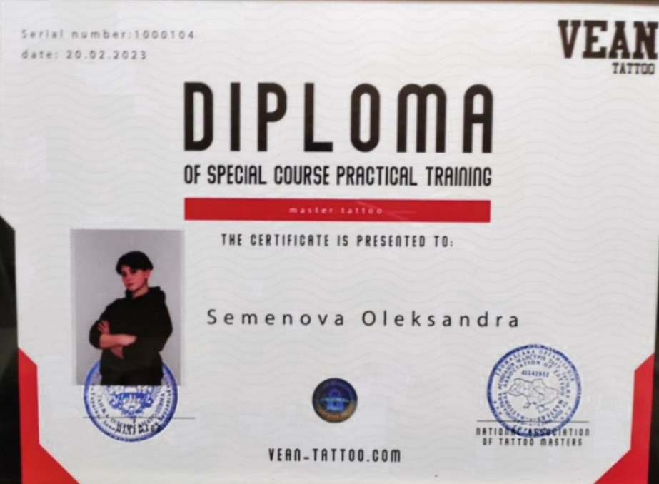 Привіт! Я Олександра) Я доволі творча особистість з трішки шаленою фантазією) Все своє життя я присвячую творчості та художньому мистецтву, тож із задоволенням це втілюю у тату) Я дуже кайфую працювати та прикрашати тіло гарними образами та фактурами) Найбільше люблю працювати у таких стилях, як олд скул, графіка, акварель, а також все яскраве)