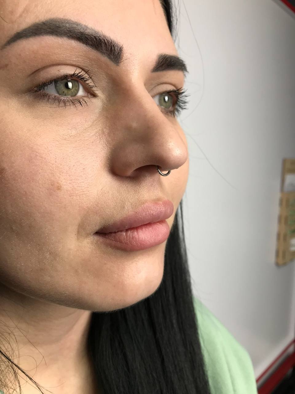 Створення татуажу проходить виключно з використанням анестезії, оскільки зона обличчя дуже чутлива.